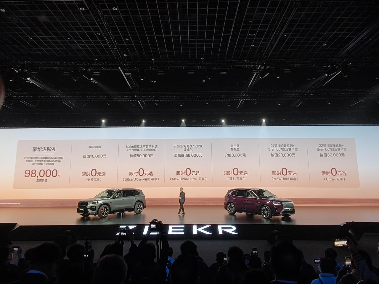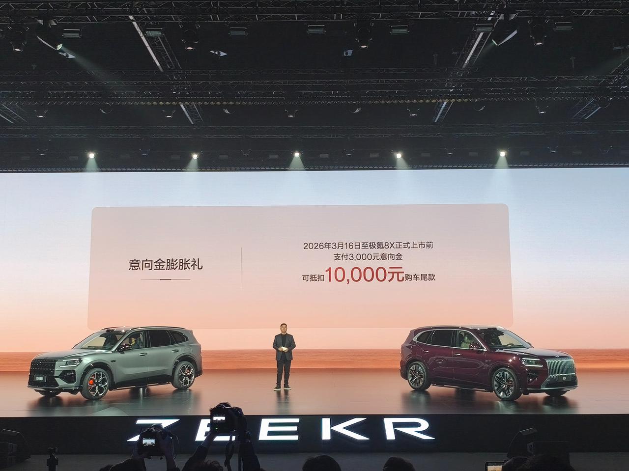 车盟快讯:3月16日,极氪高性能旗舰SUV极氪8X开启预售,预售价为:37.68万元至51.68万元。现在下订可享受价值十万+预售权益。新车定调高性能豪华大五座,其5.1米级车身空间利用率达72%,座舱、后备厢空间表现优异,配备伊姆斯躺椅、Naim音响、5D超感移动影院等豪华配置。该车基于浩瀚-S电混架构打造,双电机版续航超1400km,三电机版零百加速2秒级,还搭载高阶智驾与智能座舱系统。新车将与极氪9X形成双旗舰布局。大家认为,号称拥有飞度的油耗和兰博基尼的动力的极氪8X能否重塑中大型高性能SUV市场格局呢?