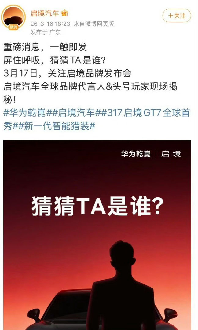 黄景瑜华为汽车代言最高title黄景瑜汽车代言最高title官宣预热氛围感拉满!黄景瑜以最高title牵手华为汽车,黑色剪影尽显高级质感,挺拔身形与座驾同框气场拉满。硬朗气质与科技座驾完美契合,内娱车代天花板!