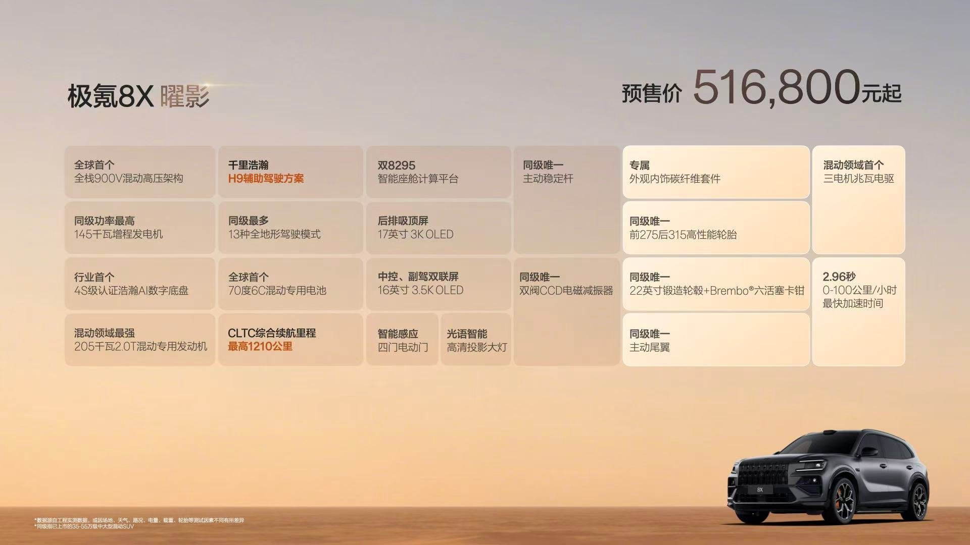 极氪8X开启了预售,37.68万起。给了Max、Ultra、Ultra+和曜影的
