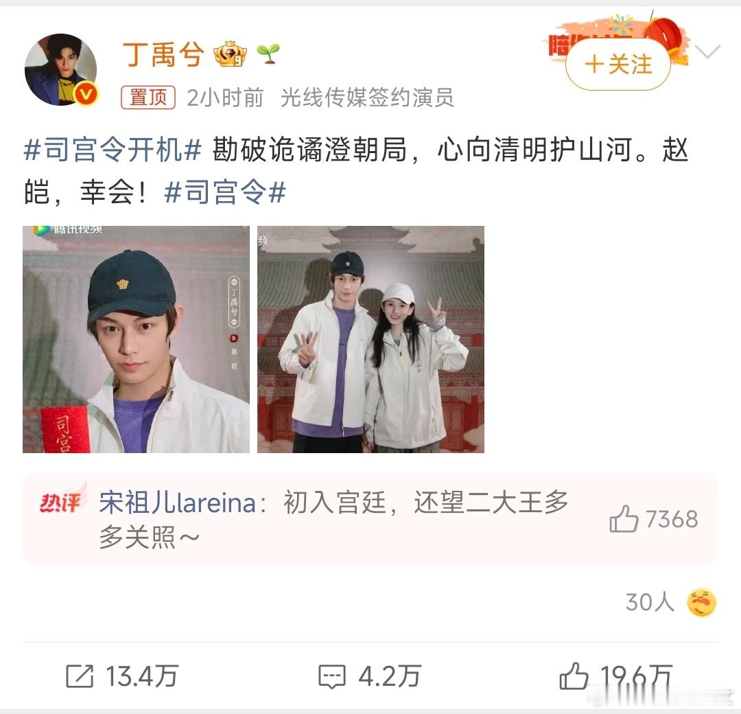 宋祖儿回复丁禹兮 丁禹兮与宋祖儿片场互动自然又合拍,同框状态清爽养眼,默契度直接拉满!期待新剧里的对手戏,坐等更多精彩路透~司宫令