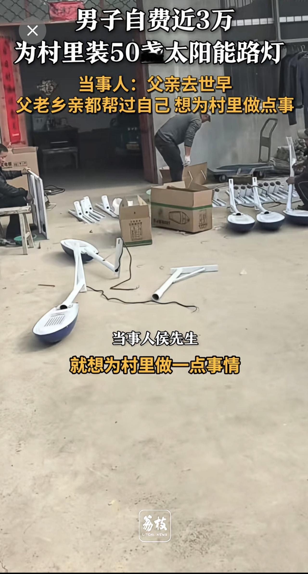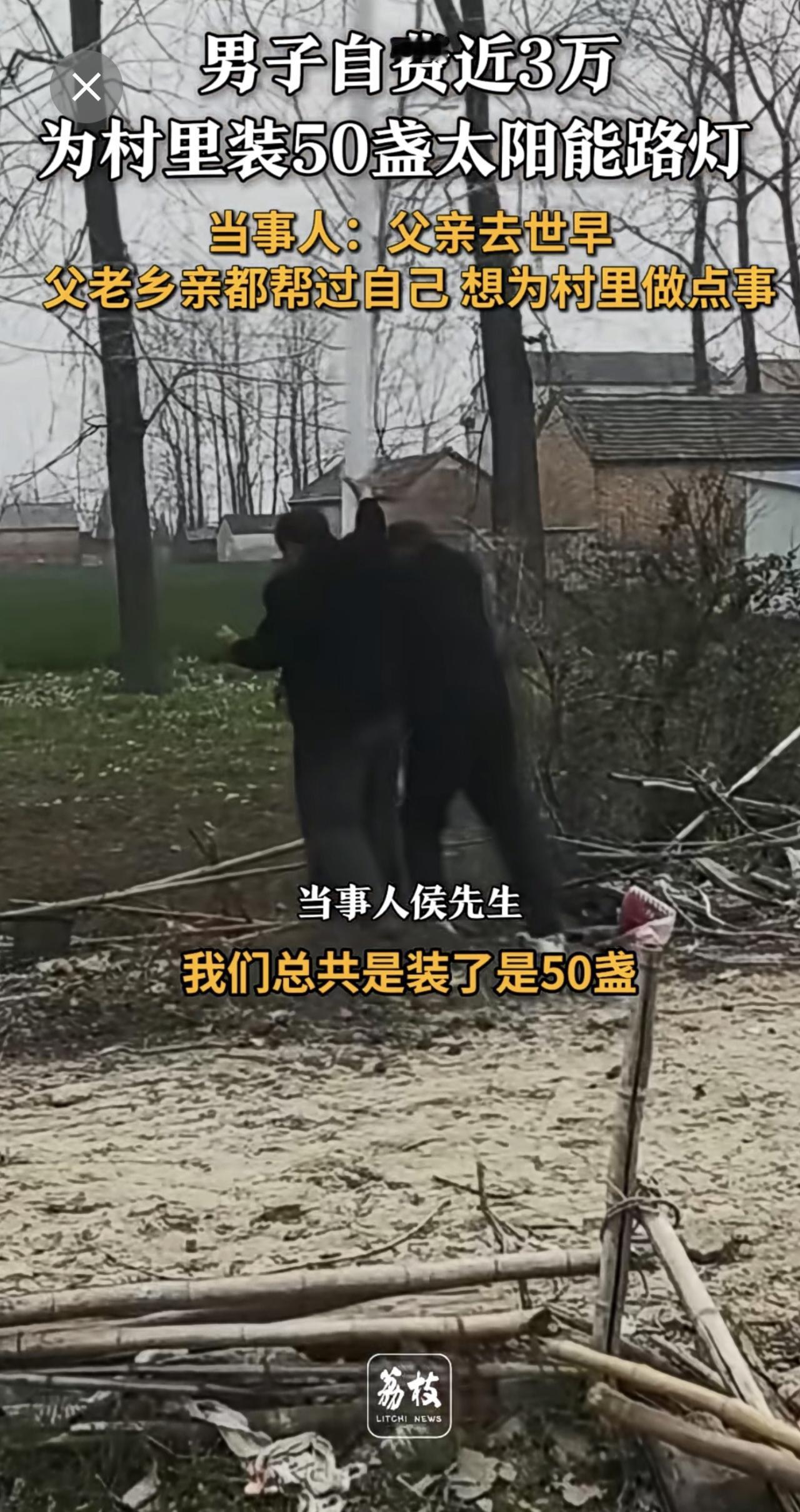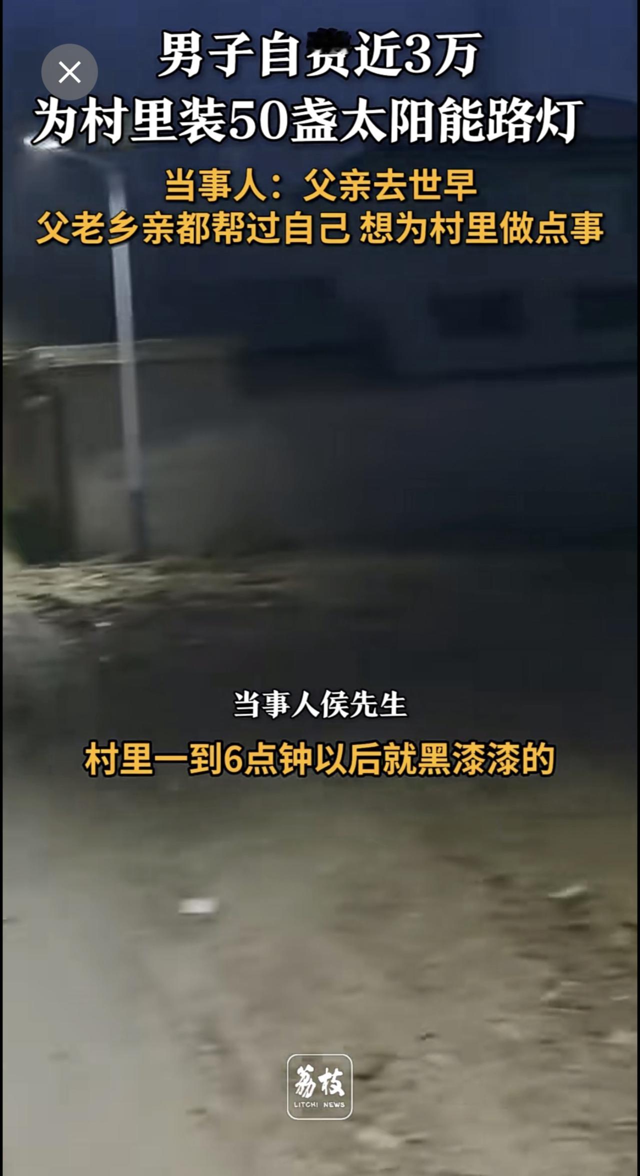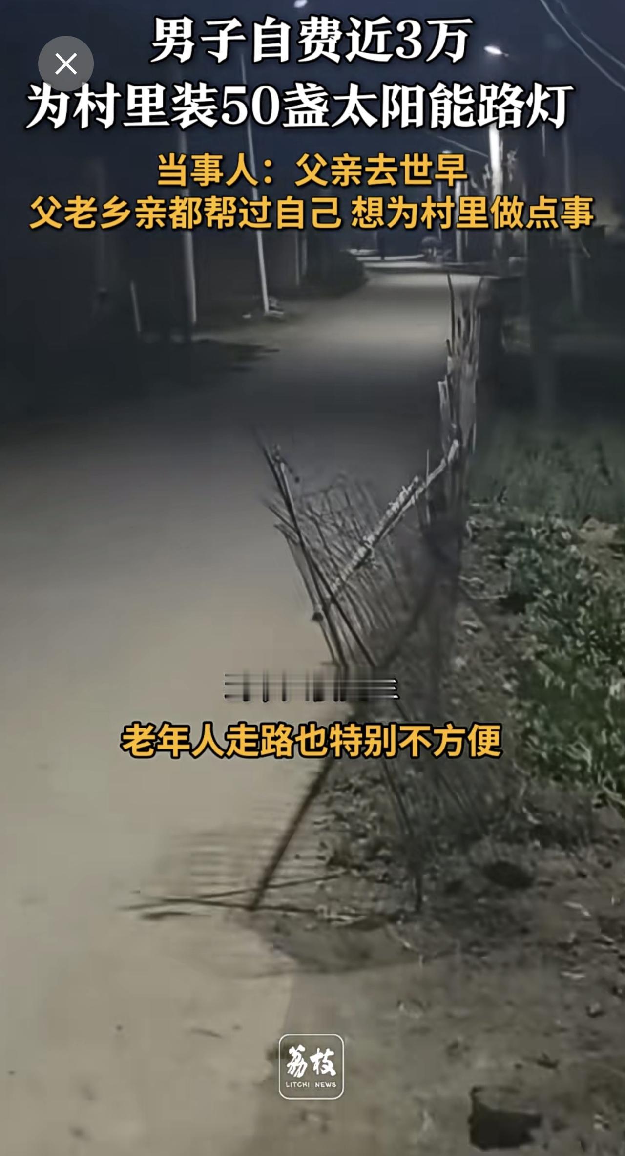 男子自费3万为村里装50盏路灯 :父老乡亲都帮过自己,想为村里做点事