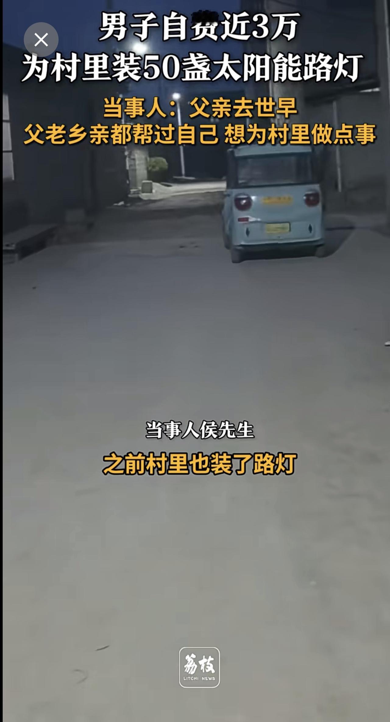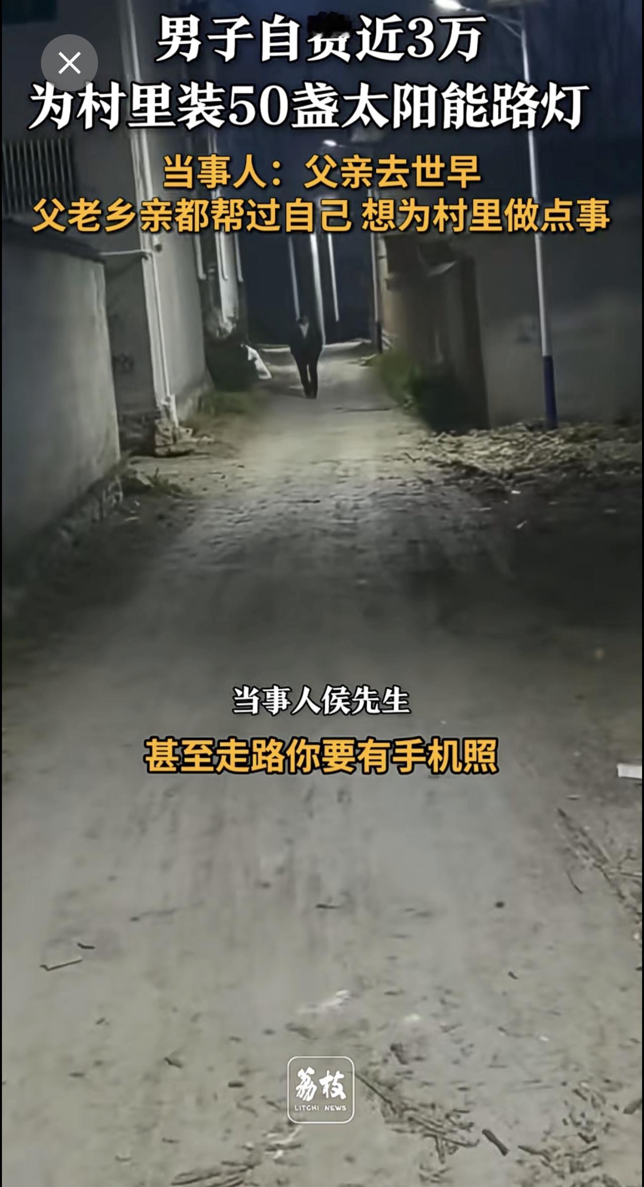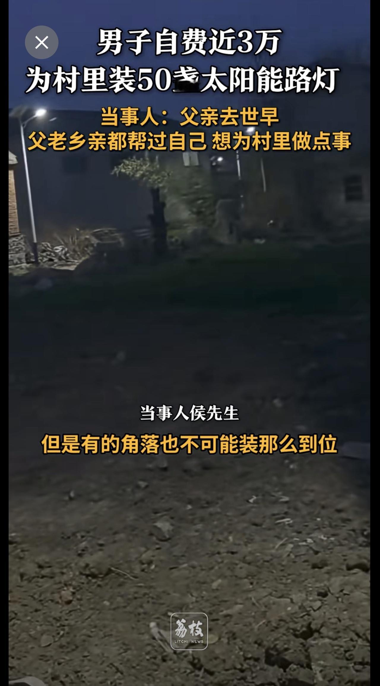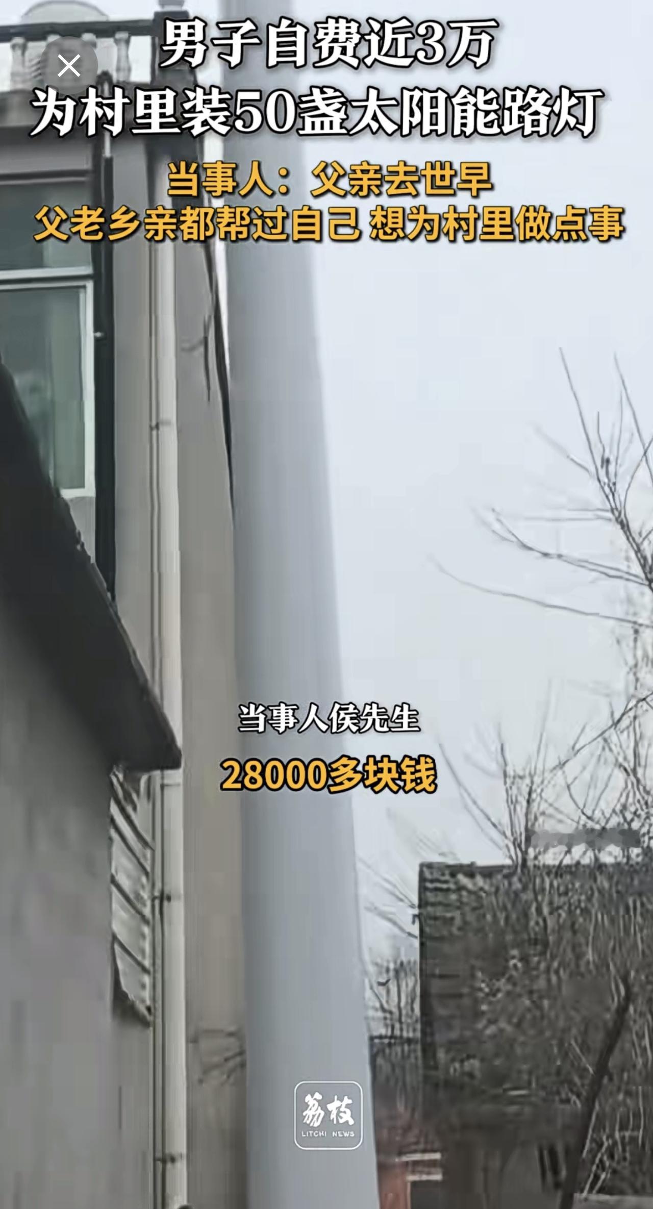 男子自费3万为村里装50盏路灯 :父老乡亲都帮过自己,想为村里做点事