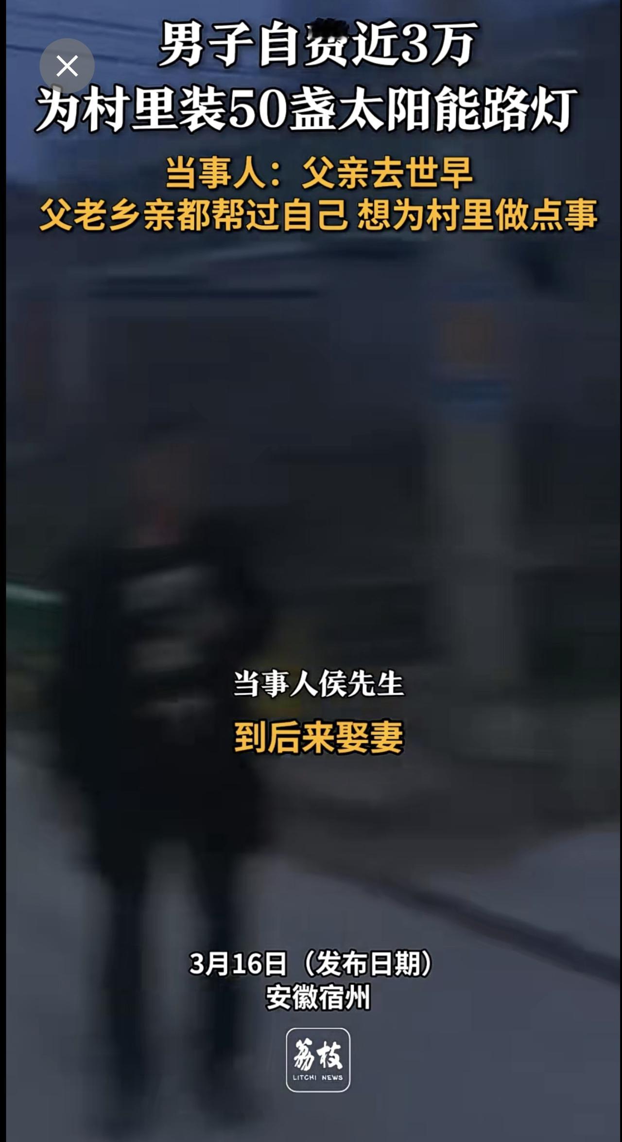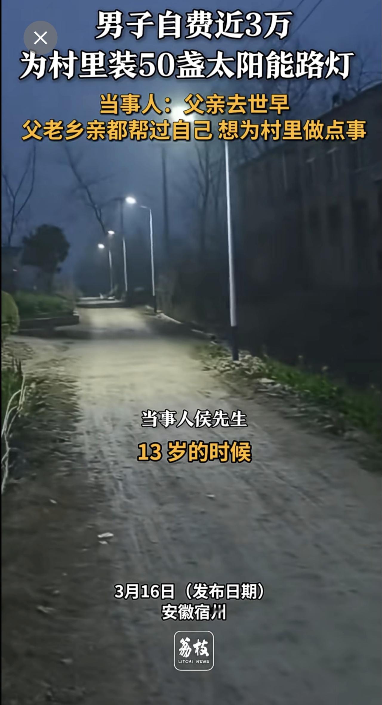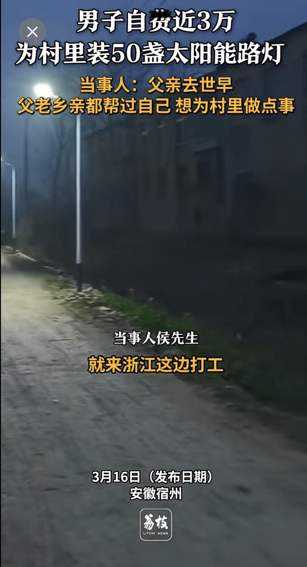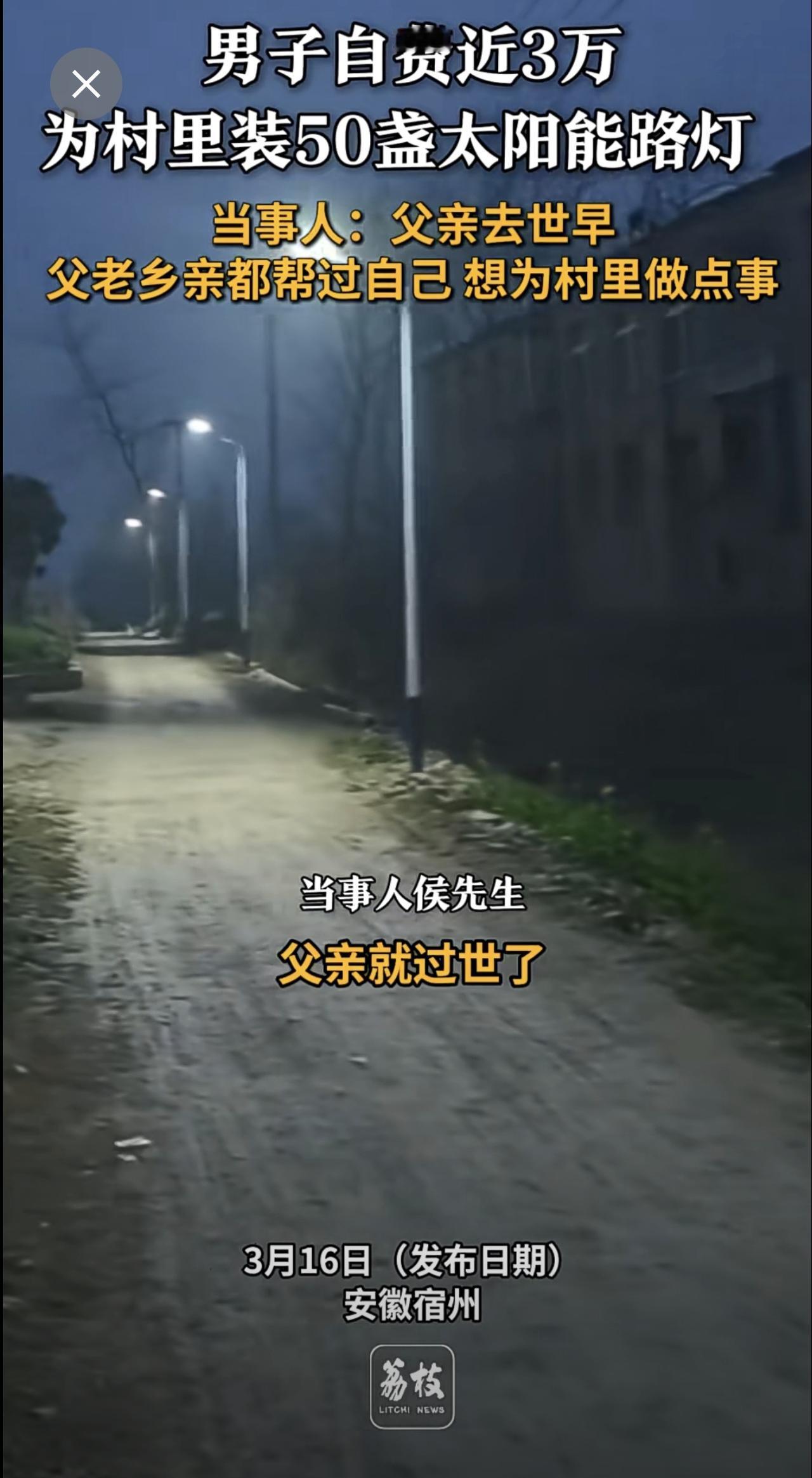 男子自费3万为村里装50盏路灯 :父老乡亲都帮过自己,想为村里做点事