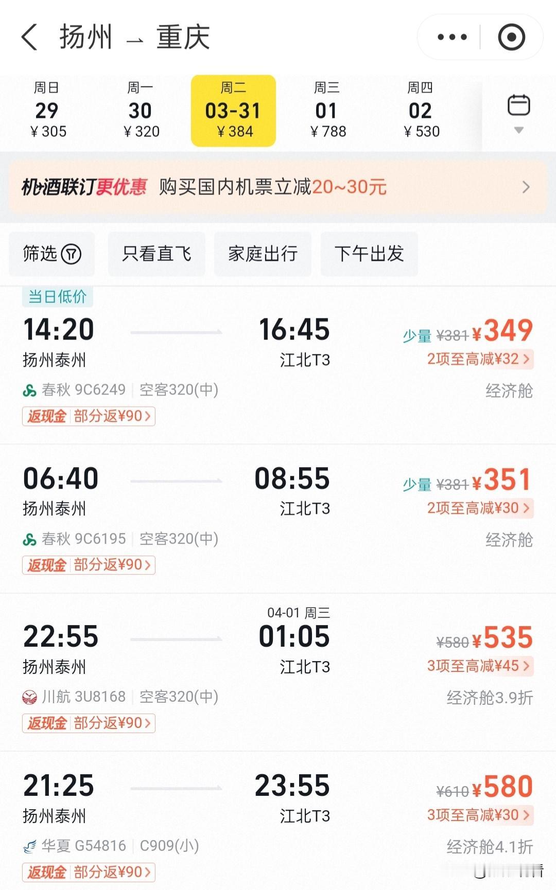 扬泰机场✈️重庆航线大升级!每日3-4班 民航换季新消息来啦🔥 扬州泰州国际机场重磅加密重庆航线 每日3-4班,早/中/晚多时段任选 班次更密、时刻更优,直接打通苏中→山城空中快线🌉 早班飞,中午就能嗦重庆小面 午后飞,傍晚打卡洪崖洞夜景 错峰晚班也超舒服,出行超自由✨ 春秋/川航/华夏航空联合执飞,2h+直达 江南古韵×8D魔幻山城,说走就走太香了