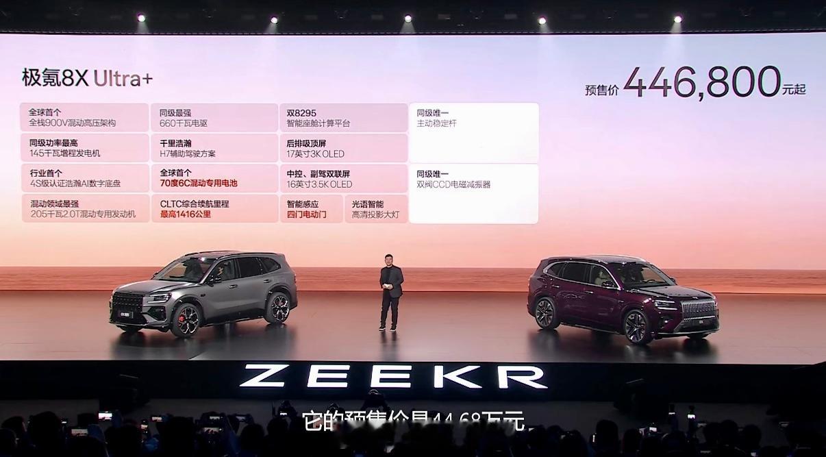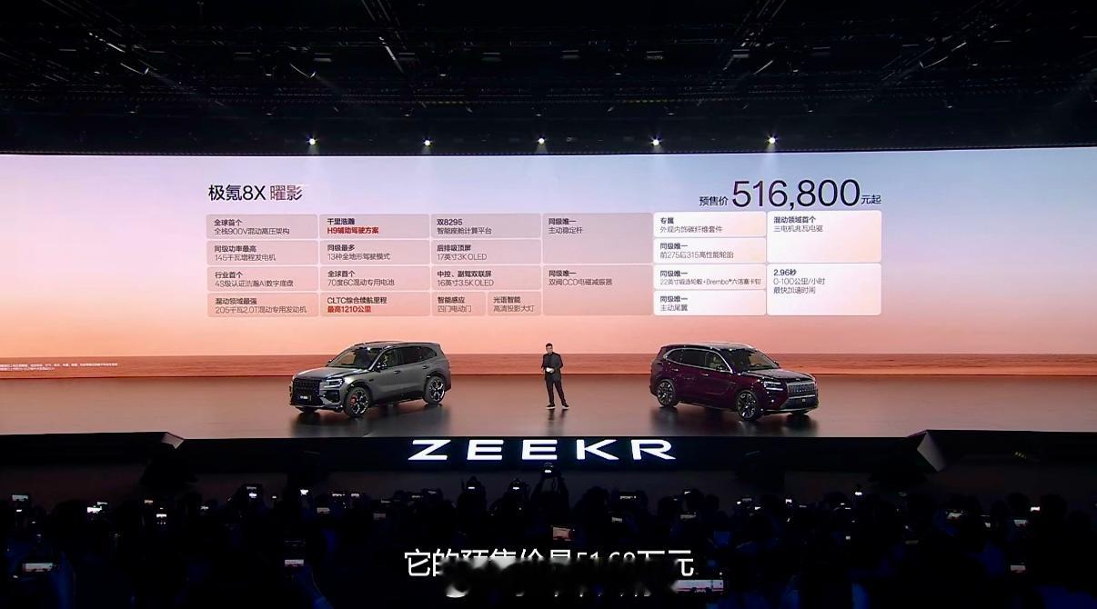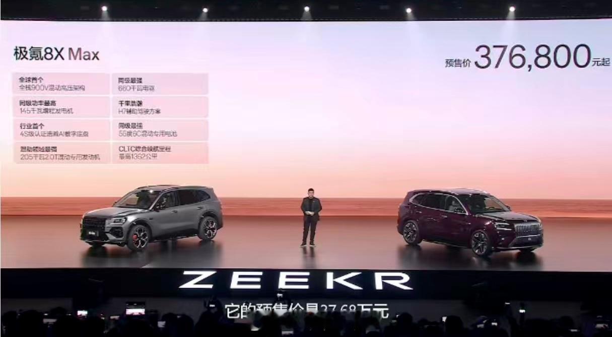 极氪8x 预售价格37.68万—51.68万元,这确实比我预测的40万-50万起步要低,是个不错的“惊喜”。