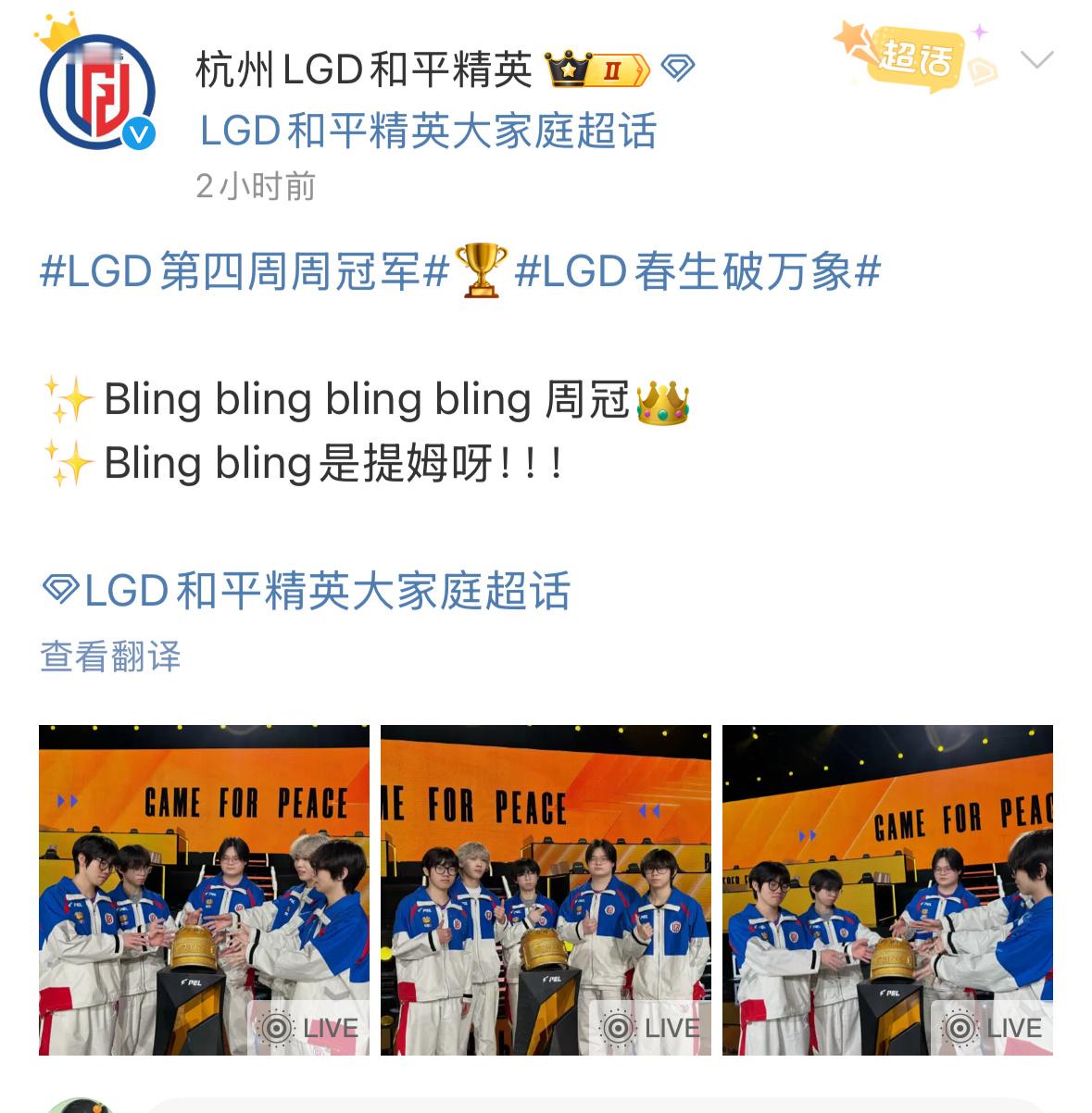 LGD第四周周冠军Bling bling是呀!2026pel春季赛