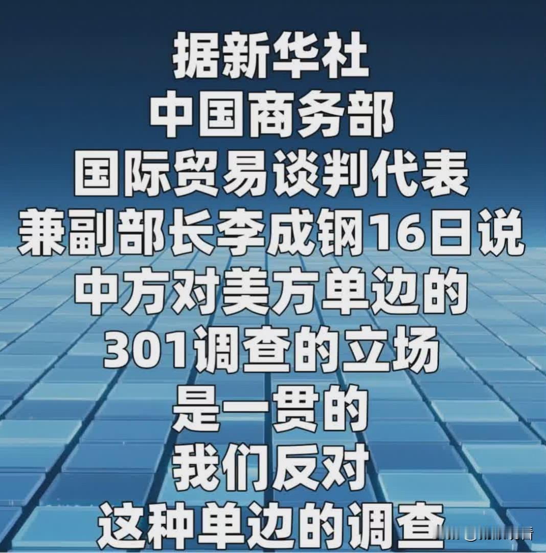 中方明确反对❗美方单边301调查 国家立场必须亮明🔥 中方坚决、明确反对 美方发起的单边301调查! 说白了就是典型的贸易保护主义 用自家规矩凌驾于国际规则之上 完全不符合世贸组织精神 也会破坏中美经贸来之不易的稳定局面💥 官方态度很清晰: 坚决维护国家利益 坚决维护多边贸易体制 也保留采取必要措施的权利 敦促美方立刻停止错误做法! 我觉得大国底气,稳稳的✅
