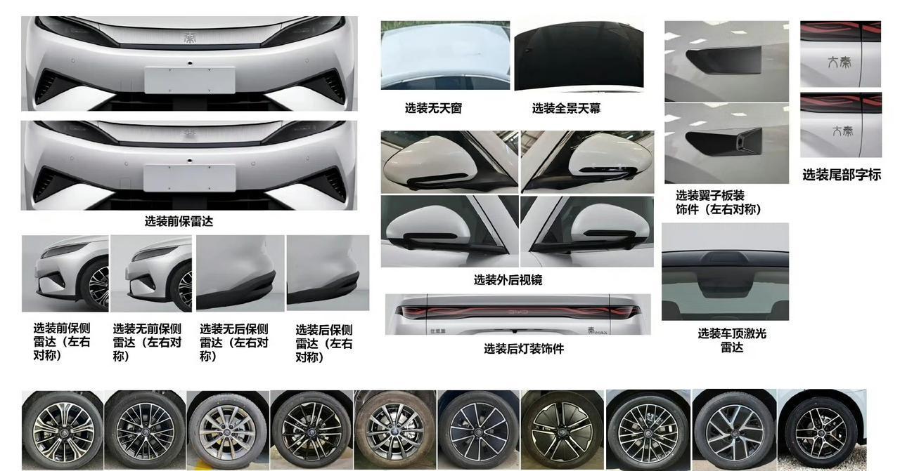 比亚迪秦MAX DM-i申报图,可选激光雷达 插混 中型轿车; 车长4866,轴距2820。 1.5L插电混动系统, 25.287度/34.275度电池, 纯电续航170km/230km。 比亚迪秦MAX申报图比亚迪秦max 【来自懂车帝车友圈】
