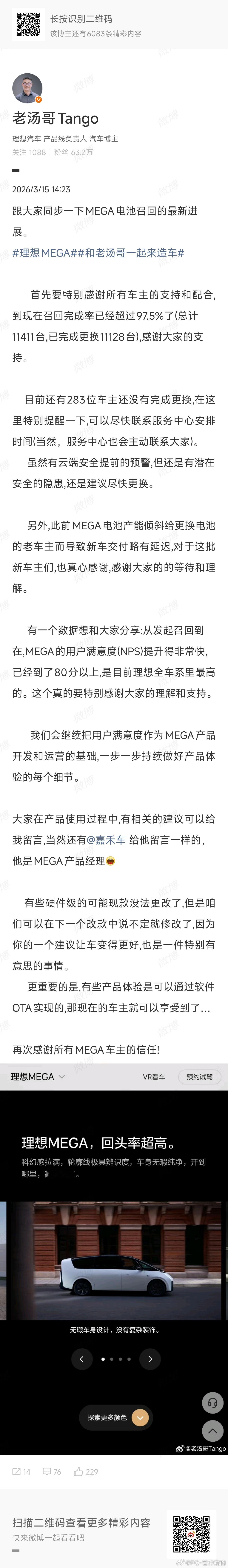 从老汤哥的字里行间,能清晰触摸到他对理想MEGA的珍视,以及对产品长期主义的坚定
