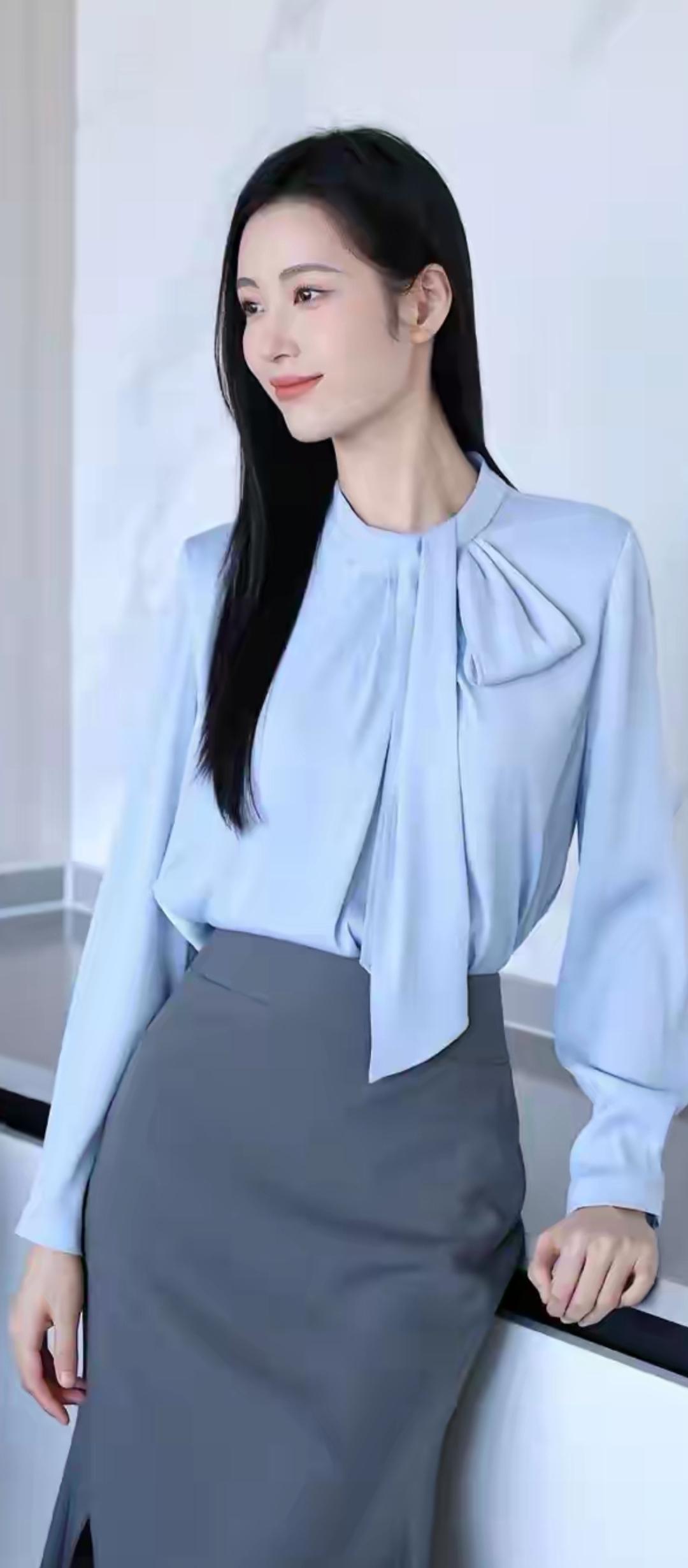 职场优雅风:白衬衫+灰色半身裙,搭配黑色高跟鞋,尽显干练气质!