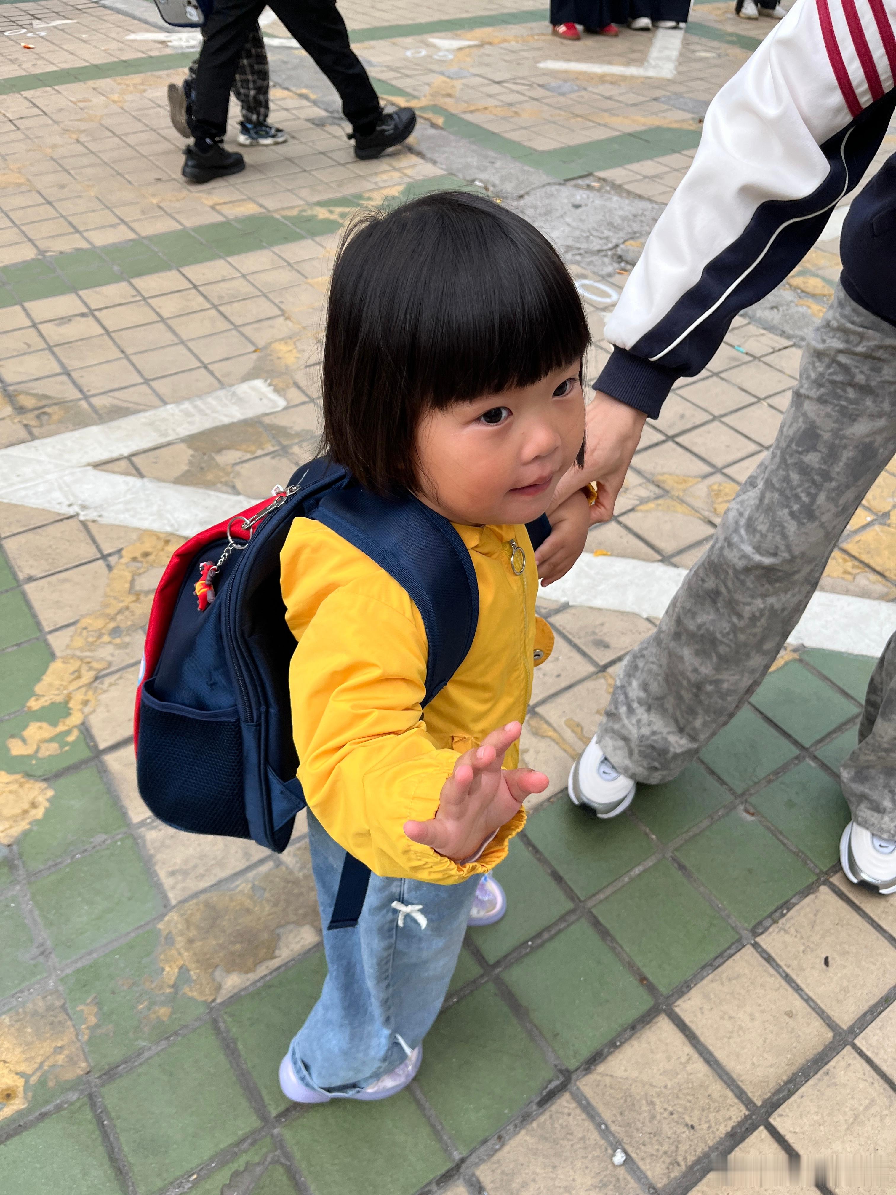 送了,今天也很顺利,虽然还会说很多话,但是不哭了。叫我和爸爸一起去接她,我说这个