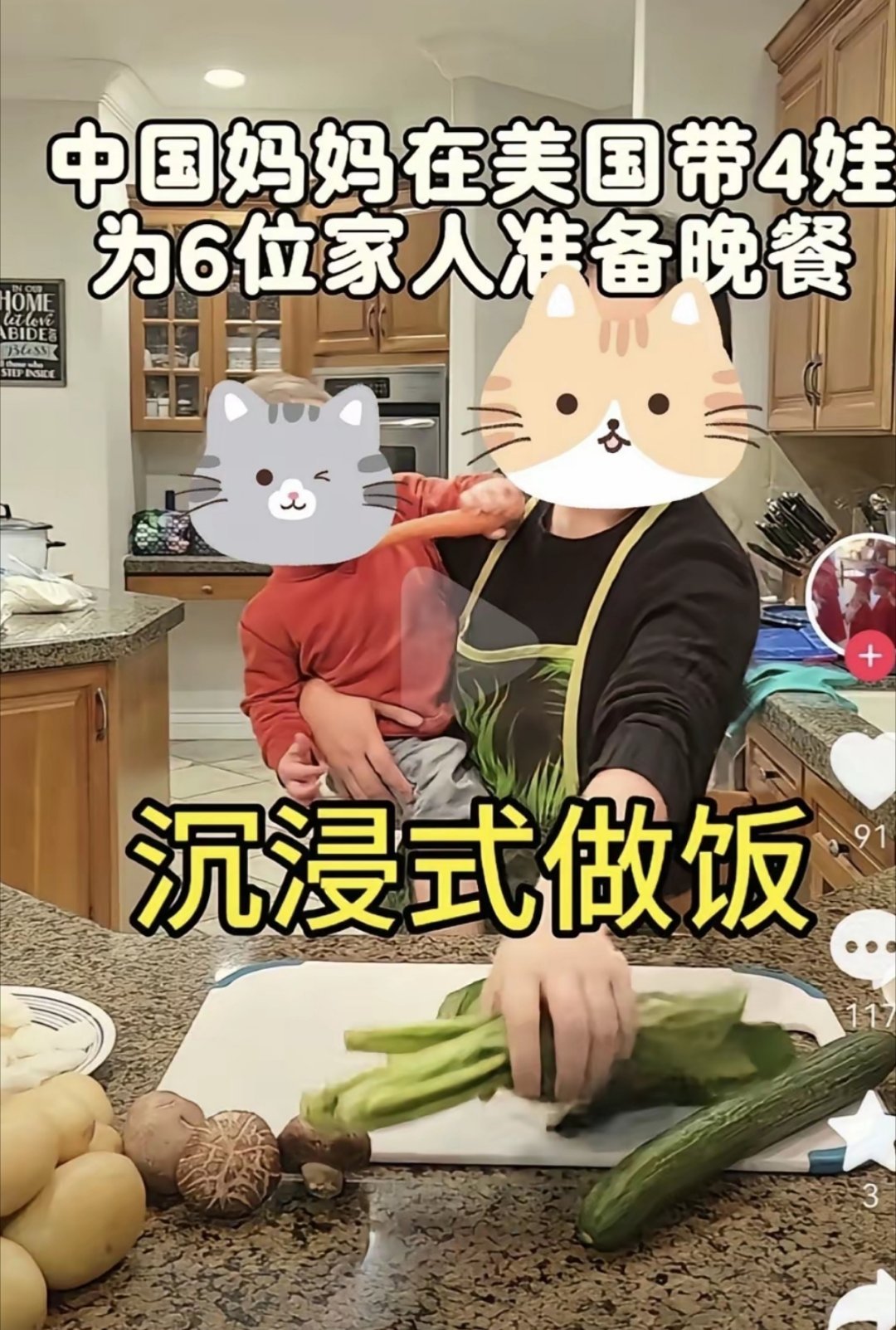 远嫁到美国的中国女子,在和她的白人丈夫结婚后,共生育了四个混血儿,她每天特别勤奋的为一家6口人“沉浸式做饭”,感觉特别幸福。