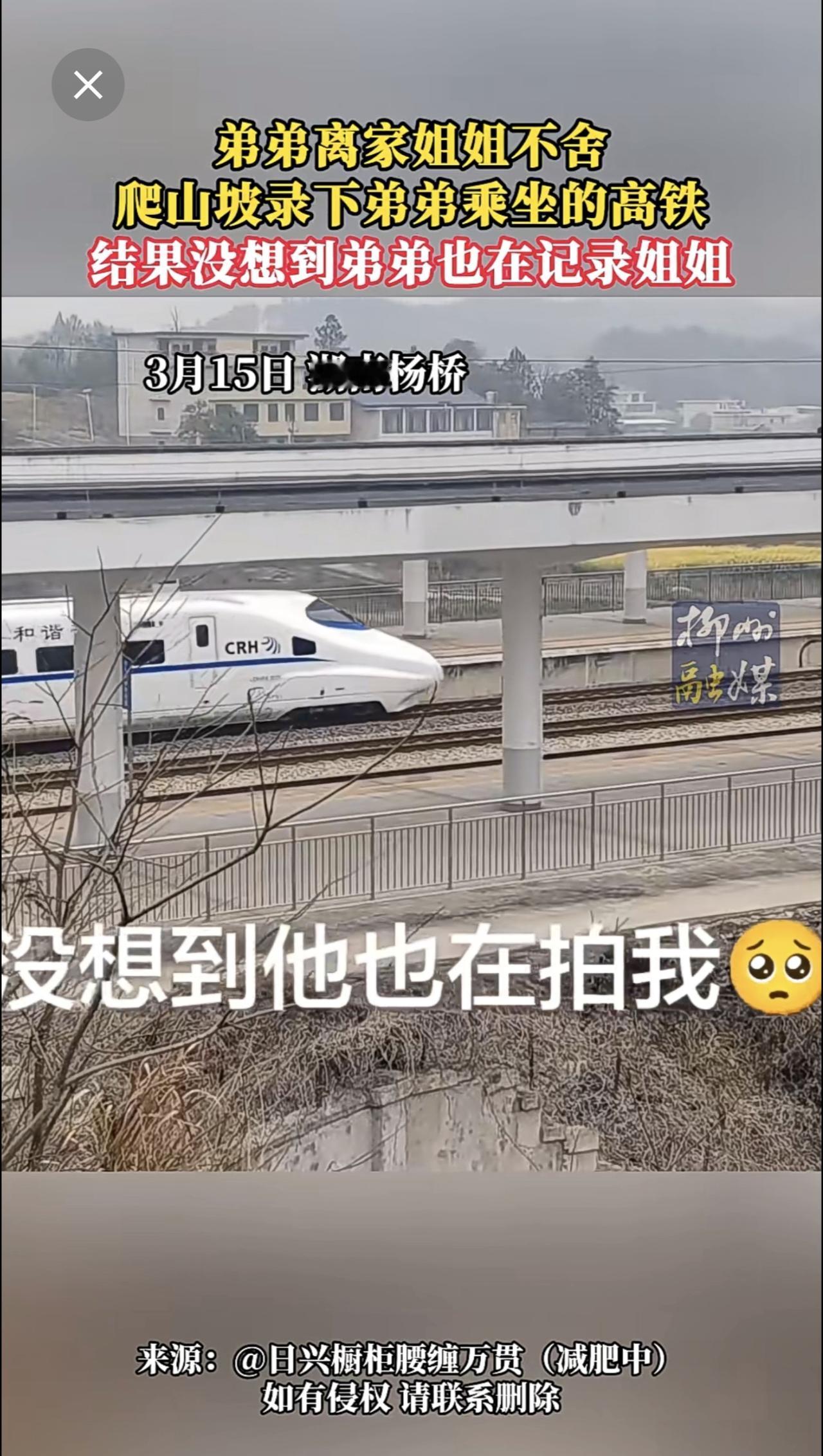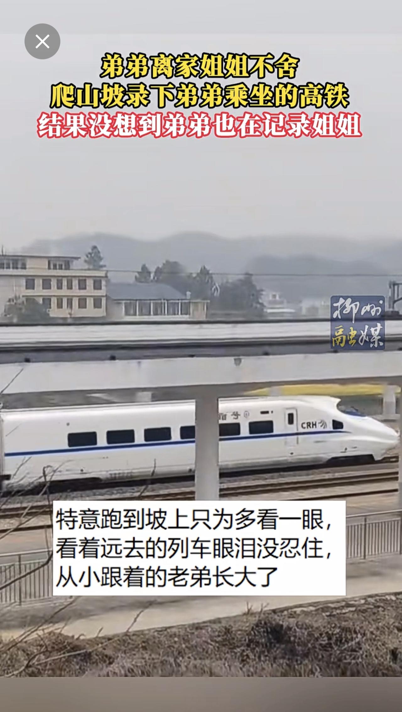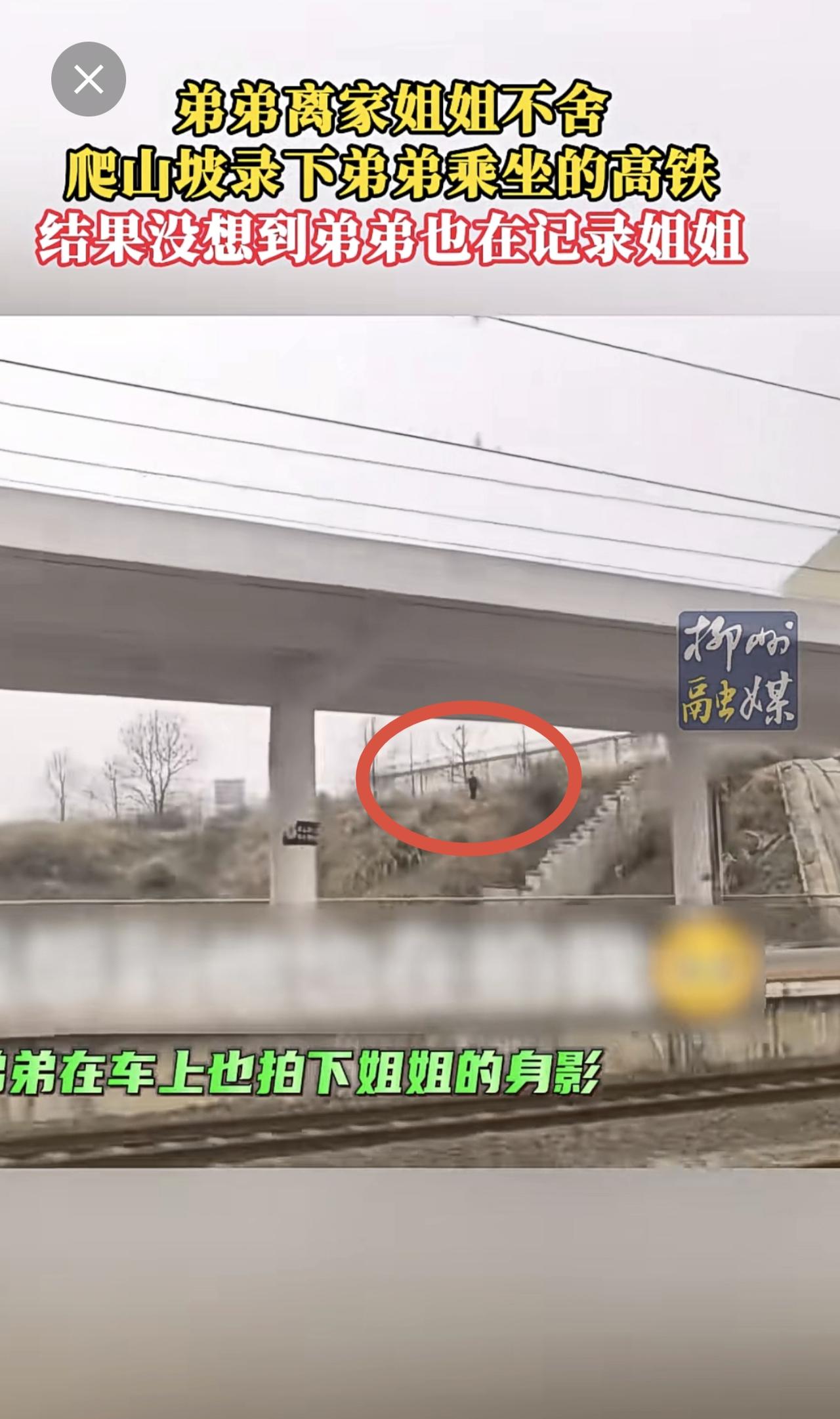 弟弟离家姐姐不舍,爬山坡录下弟弟乘坐的高铁,结果弟弟也在记录姐姐~更多新闻 欢迎关注@柳州1号