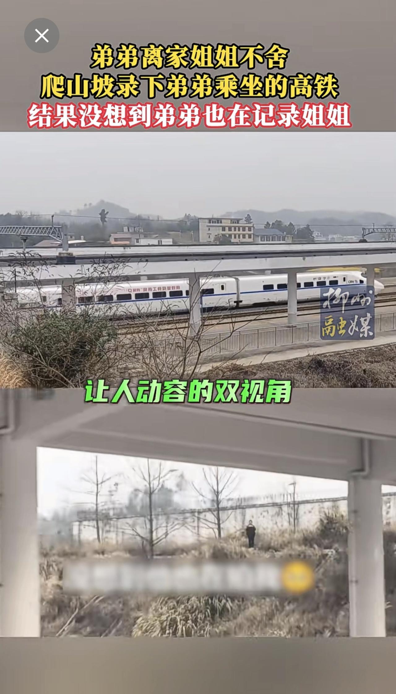 弟弟离家姐姐不舍,爬山坡录下弟弟乘坐的高铁,结果弟弟也在记录姐姐~更多新闻 欢迎