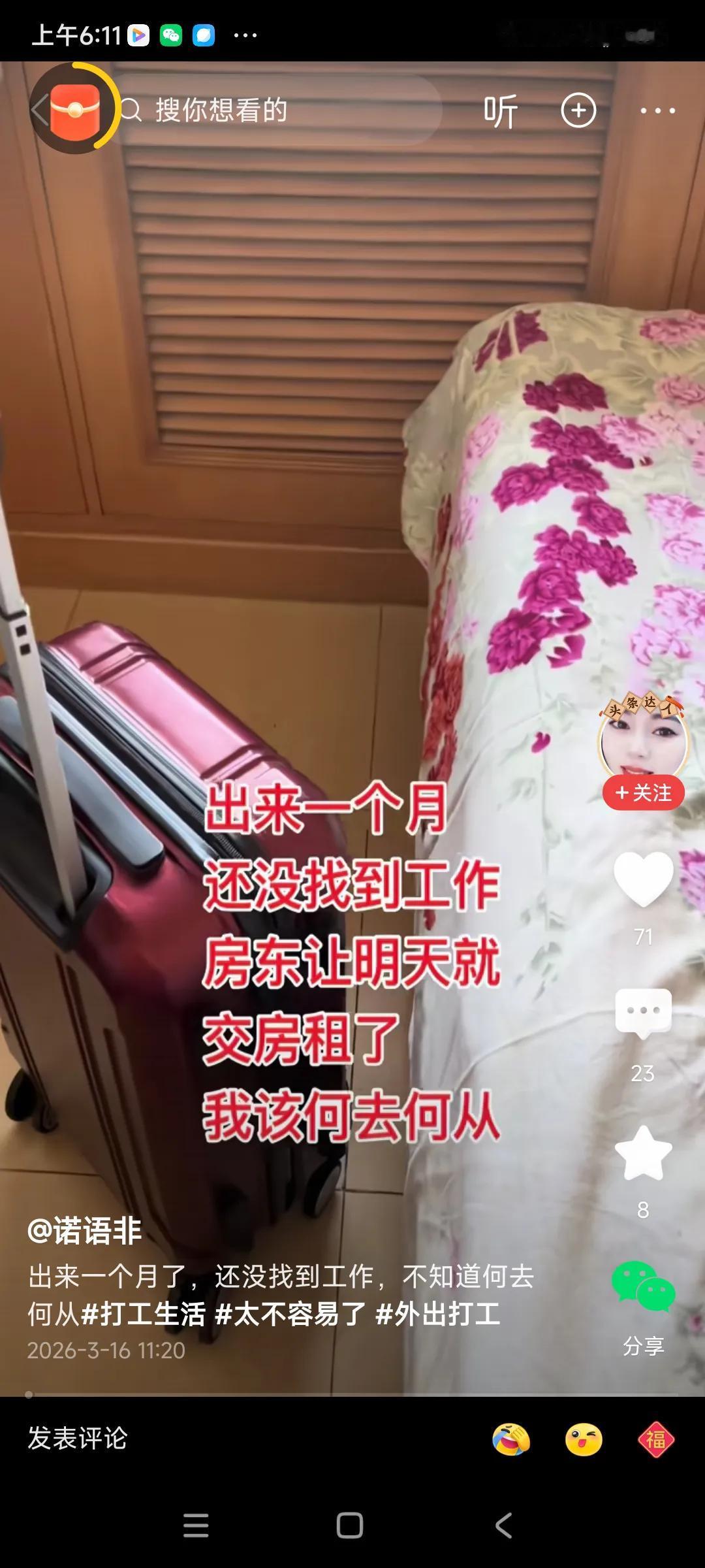 大家有工作千万别盲目辞工,与老板有矛盾,与同事合不来,暂时先忍着,除非你下家己找好了,另当别论,要不现在这形势,外面工资都差不多,好工作难找,送外卖,单价才二元,送100单,才二百元,,, 昨天,公司开会,面对销售下降的情况,老板发话,不好好干的,不想干的,可以马上走人,不用提前一个月通知,现在人多,只走人,不招人,,,现在人少困难大,觉的干不了,可以走人,绝不强留,,, 大家本来有困难,谁也不敢说了,[捂脸][捂脸]