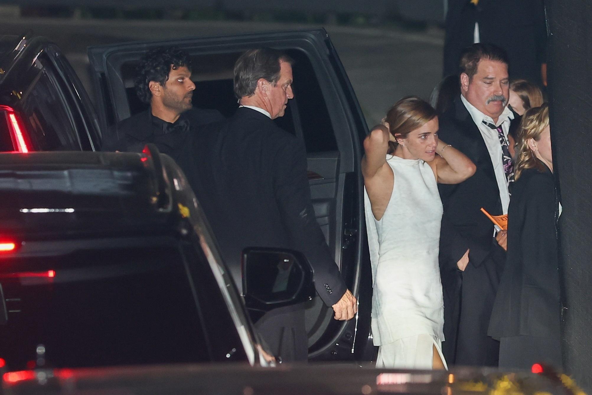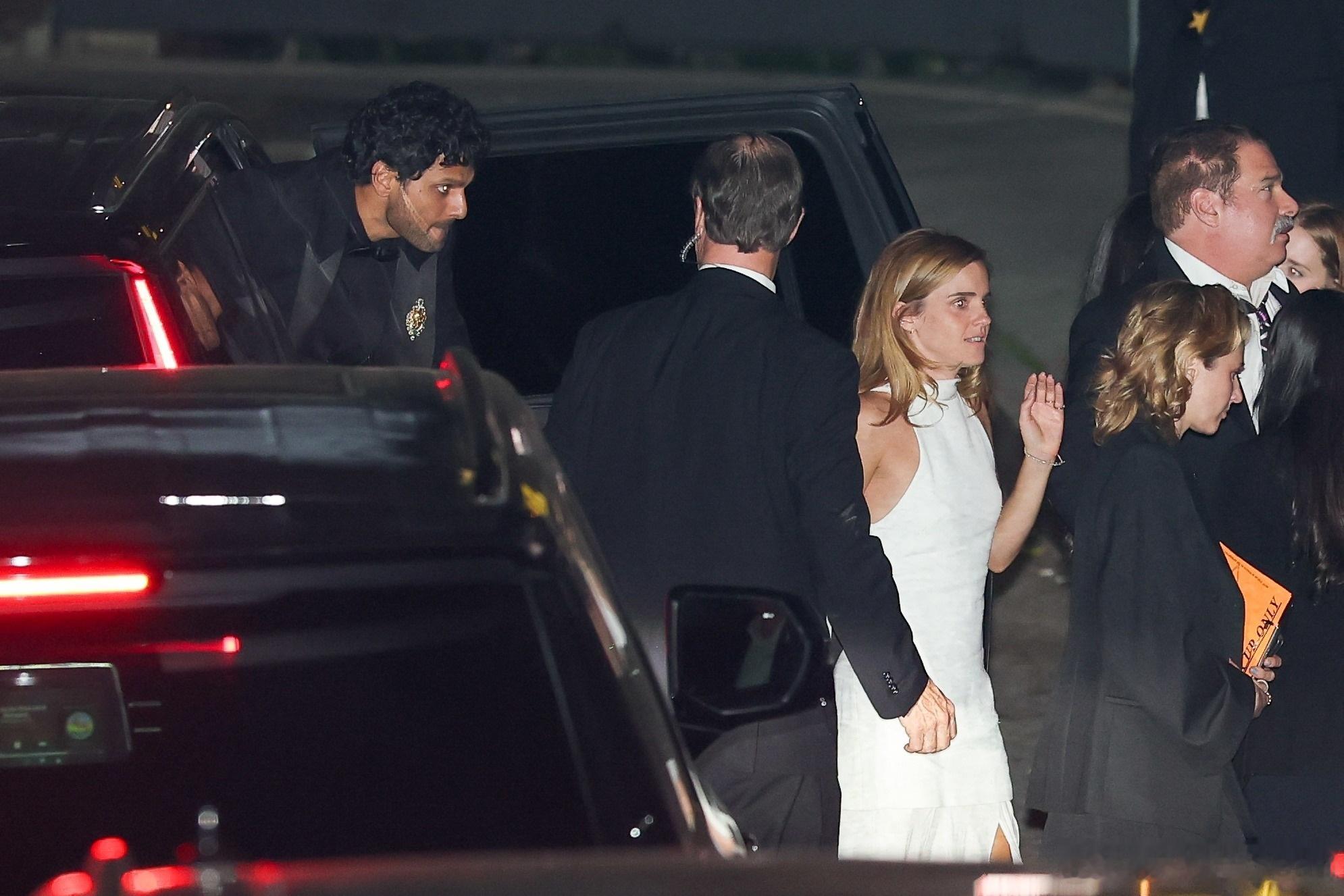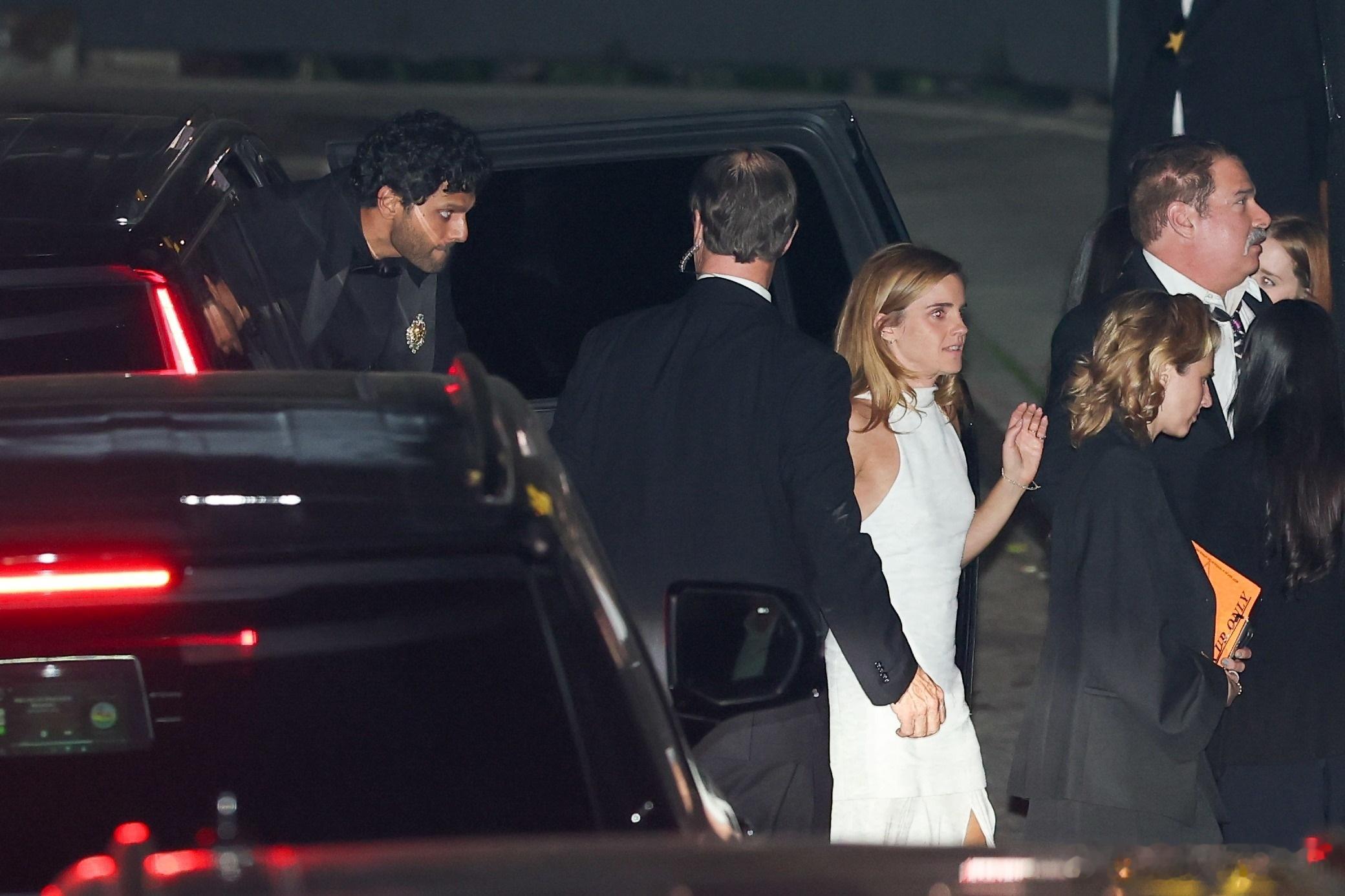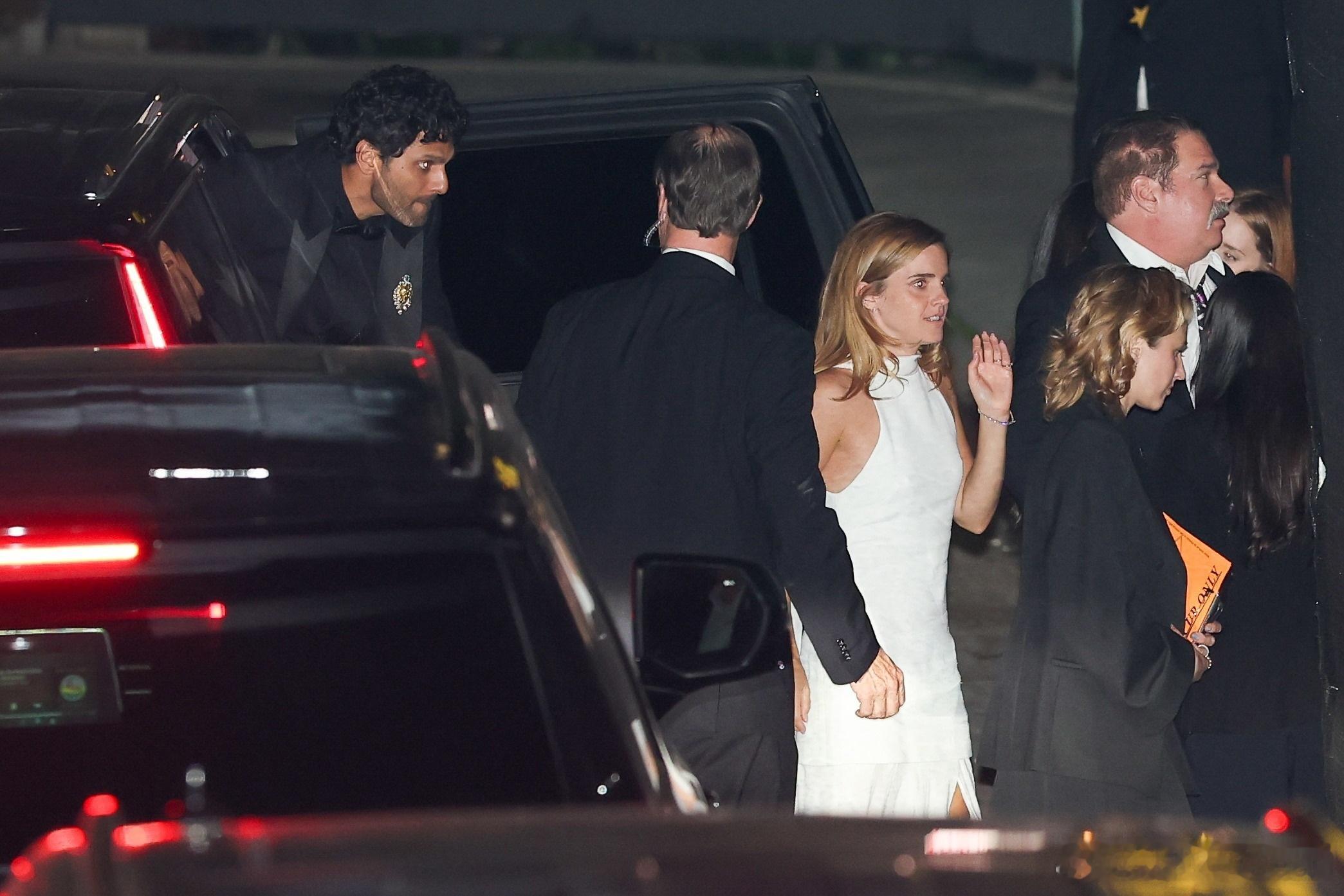 Emma Watson艾玛沃特森在洛杉矶外出,和博客主持人Jay Shetty一起前往参加碧昂斯和Jay Z举办的奥斯卡派对