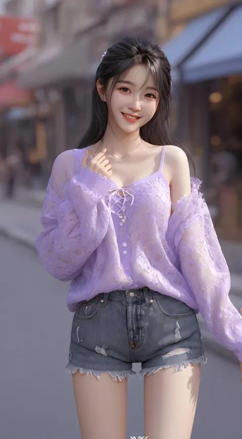 紫色蕾丝露肩上衣搭配牛仔短裤,甜美又时尚!大家认为好看吗?💜👗👖