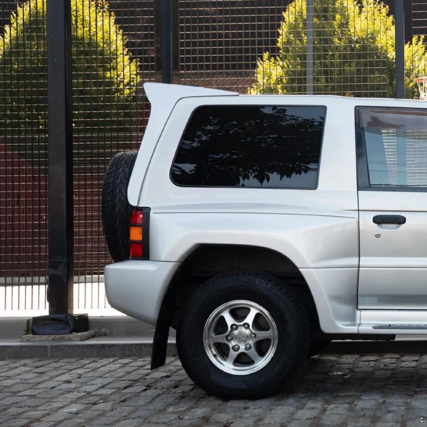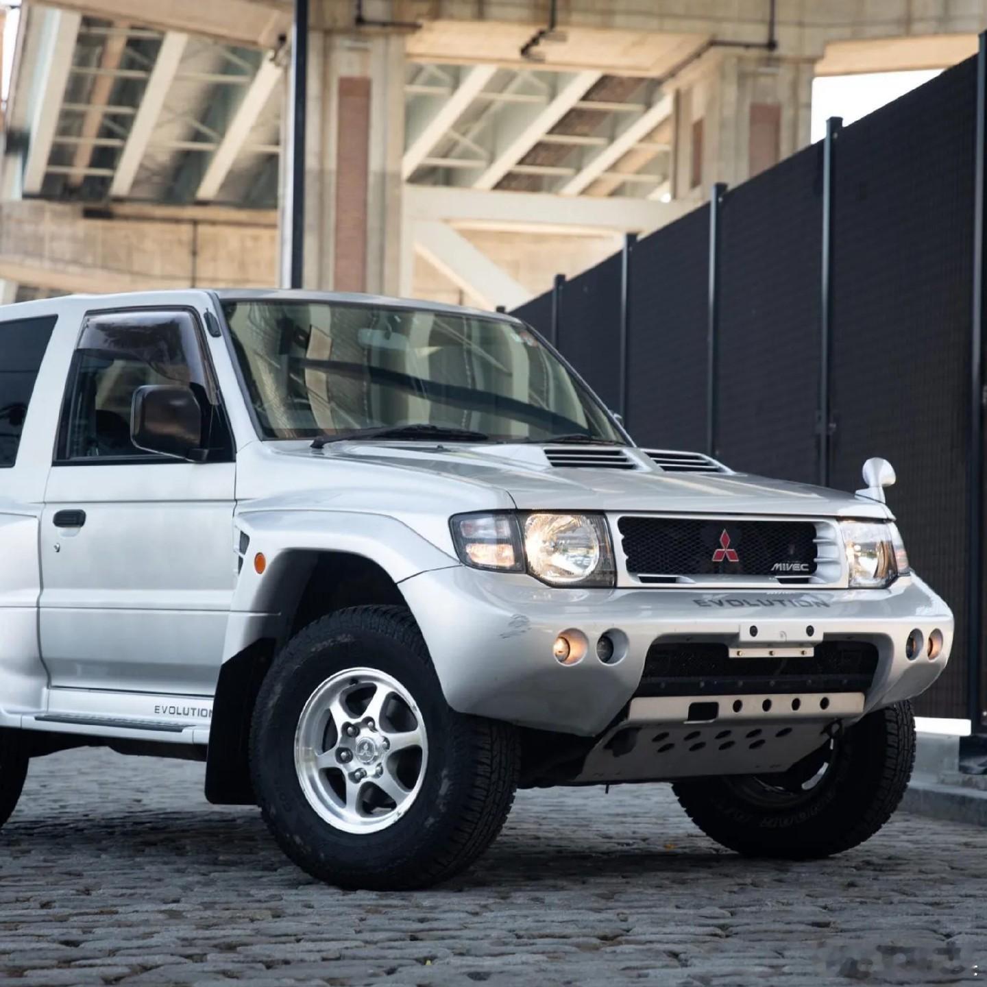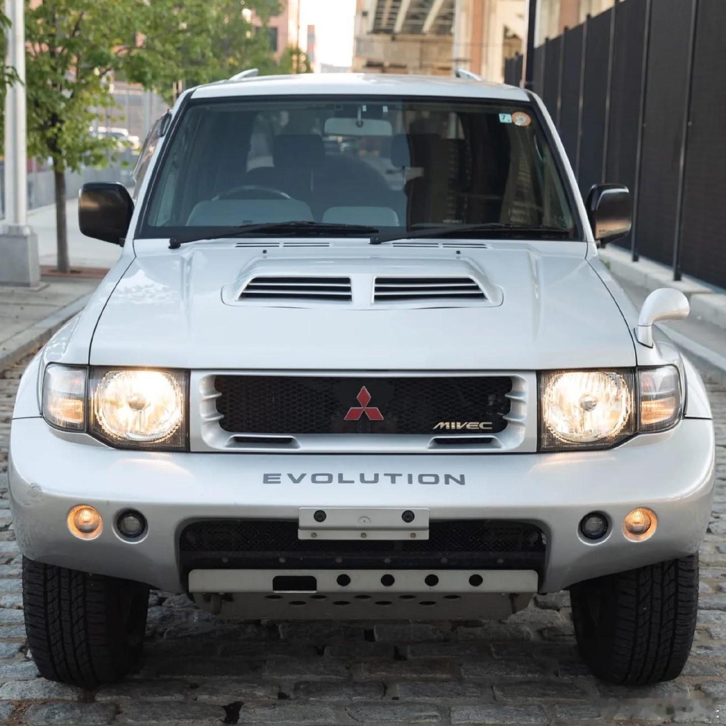 帕杰罗 美国人终于开上了帕杰罗EVO LUTION.这台1997款三菱帕杰罗Evolution(V55W),是全球限量2500台量产车之一(实际官方2693台,达喀尔T2组公路版量产车)。2022年依靠经典车政策正式进口至美国;当前里程约3.9万英里(≈6.28万公里)。车身为卫星银金属漆,内饰是REACRO黑色织物+花纹拼接面料。动力系统搭载3.5升V6(6G74 DOHC MIVEC),匹配5速自动变速箱、双速分动箱、中央锁止差速器,以及前后限滑差速器;专属进化版车身套件(加宽轮拱、引擎盖进气口、双鳍后扰流板等)、四组雾灯、16英寸六辐合金轮毂、自动恒温空调、Recaro赛车运动座椅、磁带音响。pajeromitsubishi三菱パジェロpajeroclassicevolutionralliartpajeroevolution六国发布联合声明