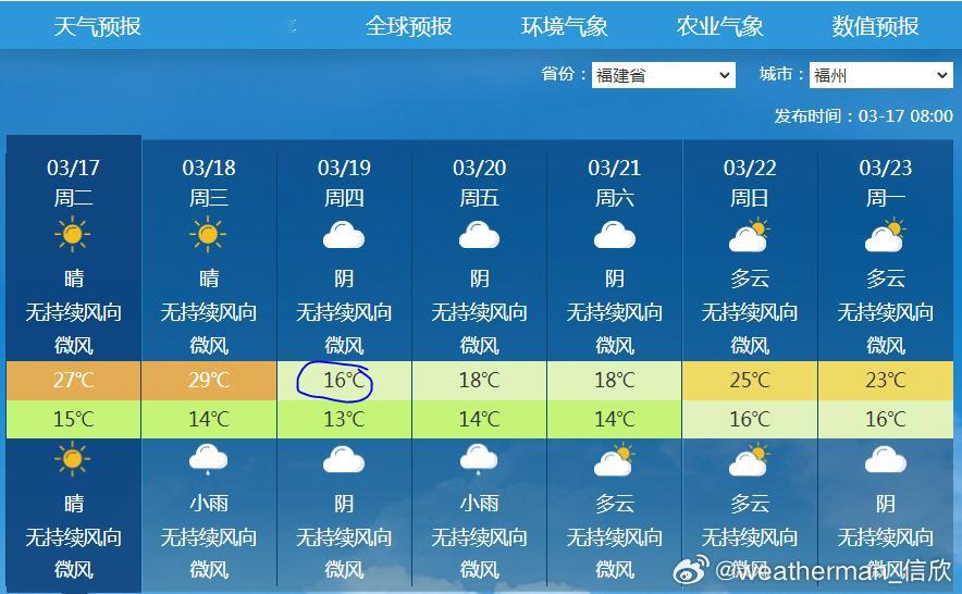 可能有人问,为何明天的降温区断开为南北两片,在河南湖北等地气温是上升的?因为明天这一带的降雨结束,部分地区甚至放晴,有光照加热,抵消了冷空气降温,因此出现夹心的升温区。此外后天冷空气南下减弱,但依然会给浙江南部、福建北部等地带来明显降温,温州和福州,最高气温都可能骤降13℃。