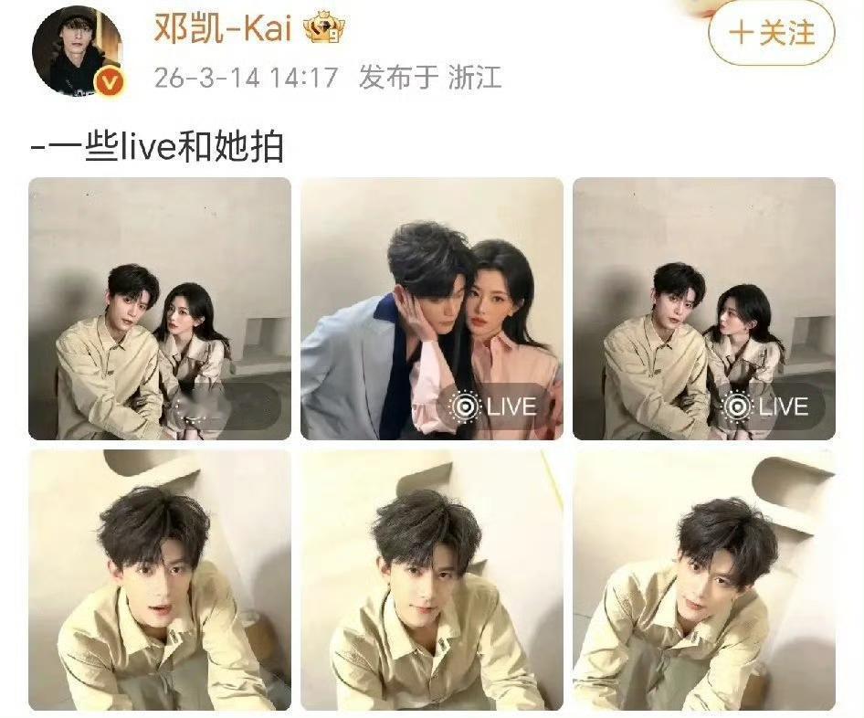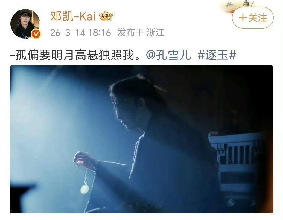 白色情人节糖点!孔雪儿邓凯密集互动,从甜妹官宣到古风深情,这波糖磕疯了 3月14日白色情人节,娱乐圈甜度直接拉满!孔雪儿与邓凯的互动甜蜜刷屏,一来一回的互动氛围感超绝,网友直呼“磕疯了”! 先是孔雪儿晒出独美美照与两人合拍合照,配文温柔又俏皮地向邓凯打招呼:“你好,我是孔雪儿…”,正式开启这场白色情人节互动。 邓凯也火速回应,晒出与孔雪儿的互动live图,配文“一些live和她拍”,精准还原两人甜蜜同框的瞬间,氛围感直接拉满。 更绝的是,邓凯随后又发布《逐玉》相关单人氛围感美照,配文古风诗意拉满:“孤偏要明月高悬独照我。”并艾特孔雪儿,将甜蜜氛围从现代甜宠延伸至古风意境。 从现代甜妹式官宣到古风深情的隔空呼应,两人的互动层层递进,糖点密集又有层次感,这波白色情人节的糖也太好磕了! 孔雪儿邓凯 白色情人节糖点 逐玉