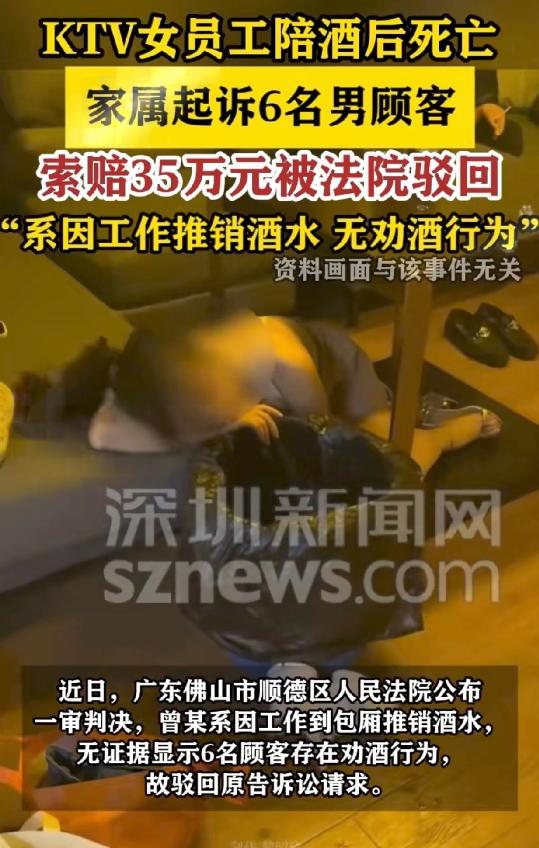广东佛山,KTV女员工走进包厢给6名男顾客推销酒水,礼貌性的喝了几口后,便在包厢休息。次日凌晨一点多,酒局散场,男子们都各自回家,女子还待在包厢。不久后,保洁发现她一个人在包厢哭,但没敢管她。谁知下午5点多,有人发现女子竟然在包厢沙发上一动不动,不幸死亡。这下,女子家属不干了,他们认为,那6个男子没有尽到照顾义务,一纸诉状告上法庭,要求赔偿35万。 在广东佛山,一间普通的KTV包厢,见证了一场毫无预兆的悲剧,也牵扯出一场关于责任与公平的争论。 没有恶意的伤害,没有故意的疏忽,可一条年轻的生命悄然消逝,随之而来的索赔纠纷,让六个普通消费者被卷入了一场本与他们无关的风波。 2024年3月的一个夜晚,六个男子相约前往当地一家KTV放松,选了V06包厢,点了酒水,打算在歌声与闲谈中度过一段休闲时光。 他们并不知道,这次普通的消费,会在日后成为一场法律纠纷的导火索。 就在几人刚开场不久,KTV的酒水推销员曾某走进了包厢。 和所有同行一样,她的工作就是向顾客推介酒水,而陪顾客喝上几口,算是这个行业里不成文的规矩,目的只是为了增加推销的成功率,并非刻意攀附或应酬。 那天的曾某,只是按流程端着酒杯上前,简单介绍了几款酒水,见六人没有购买意愿,便没有过多停留,只是出于礼貌,和几人各碰了一杯,没有过量饮酒。 之后,她没有立刻离开,而是在包厢的角落找了个空位坐下,没有打扰几人的娱乐,就那样安静地休息着。 六个男子的酒局一直持续到凌晨一点,酒喝得差不多了,几人便各自起身告辞。 离开包厢时,他们下意识看了一眼角落里的曾某,她坐着不动,神色平静,看不出任何醉酒或身体不适的迹象,几人便放心地各自回了家,没人想到,这会是他们与曾某的最后一面。 凌晨两点半,KTV的保洁人员开始按规定打扫各个包厢,当她们走进V06包厢时,发现曾某正独自坐在沙发上落泪。 常年在KTV工作,保洁人员见过太多酒后情绪不佳的人,只当她是工作不顺或是喝了点酒心情低落,既没有上前询问缘由,也没有向KTV管理层汇报这一情况,匆匆打扫完卫生后,便转身离开了,留下曾某一个人在空旷的包厢里。 时间一点点过去,直到当天下午五点多,KTV的工作人员例行检查包厢时,才发现了躺在沙发上的曾某。 她一动不动,无论工作人员怎么呼喊、摇晃,都没有任何回应,脸色也异常苍白。 工作人员瞬间慌了,急忙拨打了急救电话和报警电话,可医护人员赶到后,经过仔细检查,最终确认曾某已经死亡。 突如其来的噩耗,让曾某的家属悲痛欲绝。 在了解了事件的大致经过后,家属将所有的悲痛都转化为了不满,认为当晚在V06包厢消费的六个男子,既然和曾某一起喝了酒,就对曾某的人身安全负有照顾义务。 他们觉得,男子们散场时没有妥善安置曾某,也没有通知KTV工作人员,才间接导致了悲剧的发生,于是决定通过法律途径维权。 曾某的家属向法院提起诉讼,要求六个男子共同承担连带赔偿责任,索赔金额高达35万元。 面对这份诉讼,六个男子感到十分无辜,他们表示,自己只是正常消费,从未主动邀请曾某喝酒,也没有强迫她多喝一口,散场时曾某状态正常,他们根本无法预见会发生这样的意外,不应该为这场悲剧承担责任。 类似的事情并非个例,此前某地也曾有过一起类似事件,一人在同桌饮酒后意外身亡,家属同样将同桌人员告上法庭索赔,最终法院因无法证明同桌人员存在劝酒、放任危险等过错行为,驳回了家属的诉讼请求,与佛山这起案件的核心争议点高度相似。 客观来看,这场悲剧确实令人惋惜,但责任的划分,不能仅凭情绪和猜测。 曾某的离世值得同情,但六个男子是否需要担责,关键在于他们是否存在过错。 从事件经过来看,他们与曾某只是服务与被服务的关系,没有任何过错行为,要求他们为一场无法预见的意外买单,确实有失公平。 警方接到报警后,对事件展开了全面调查,调取了KTV的监控录像,逐一询问了六个男子、保洁人员以及KTV的其他工作人员,收集了完整的证词和证据。 而法院认为,没有任何证据能够证明六个男子存在过错,也无法证明曾某的死亡与他们的饮酒行为存在直接关联,按照“无过错则无责任”的原则,他们无需承担赔偿责任。 说到底,这只是一场意外,没有刻意的加害者,也没有故意的疏忽,将责任强行推给无过错的人,既不符合法律规定,也违背了公平公正的原则。
