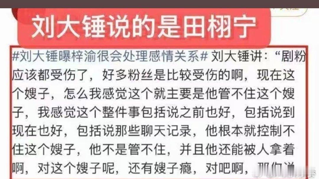 刘大锤直播爆料谁懂啊,刷热搜刷到“刘大锤说梓渝管不住嫂子”,点进去才发现根本是张冠李戴!刘大锤原话明明说的是田栩宁,结果把无关的梓渝拉出来挡枪,这波操作真的恶心到我了。我们家梓渝早就处理好感情问题,现在专心搞事业,新专辑和二巡都在筹备中,别再用这种脏水泼他了好吗?刘大锤说梓渝管不住嫂子