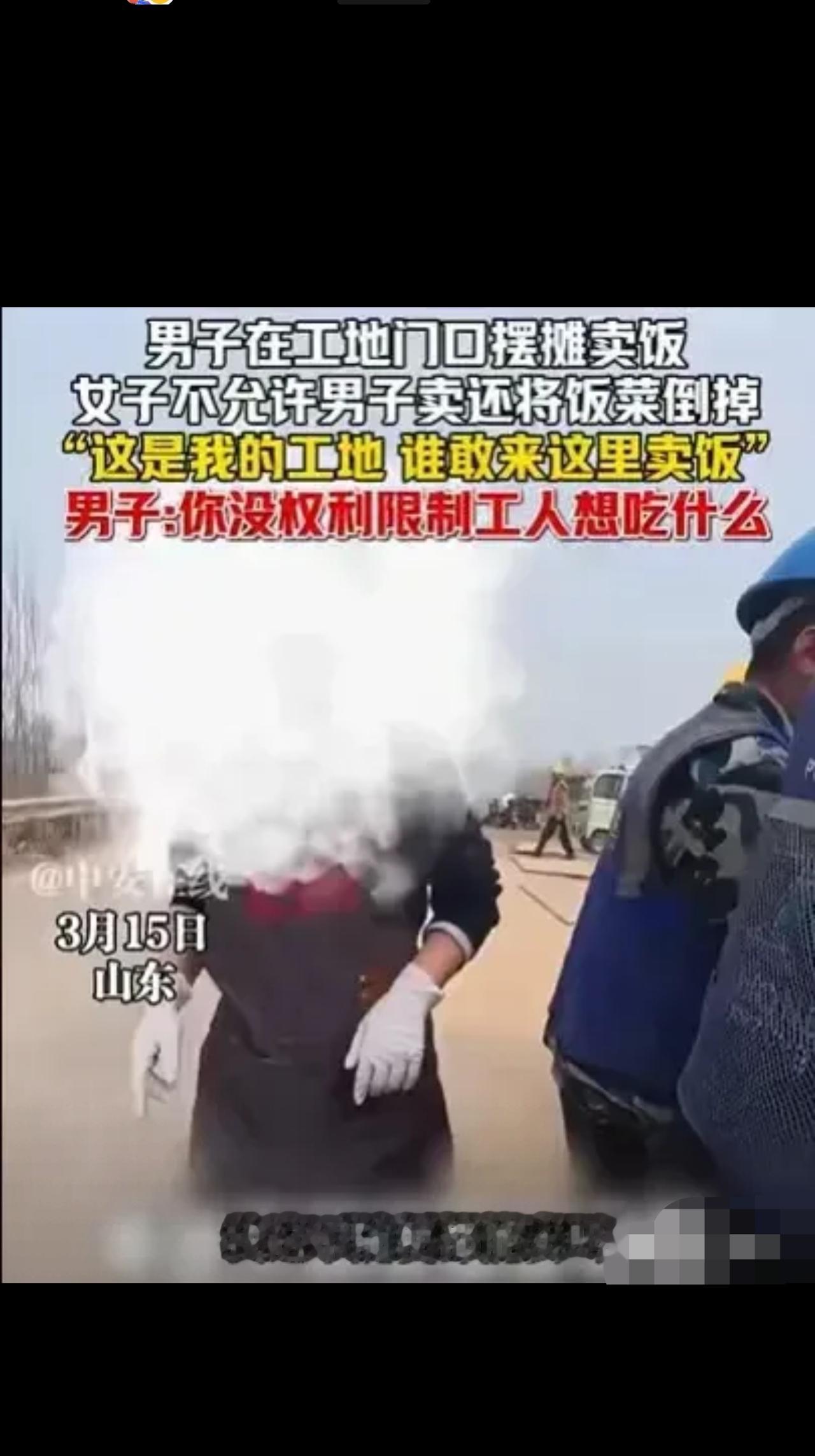 山东,男子到工地摆摊卖饭,工地也有一个女子在这里摆摊买饭,她一看到男子的到来,就过来和男子吵,不由分说,搬起男子的饭菜,就倒到路边,男子质问她,为何要倒他的饭菜,女子说:这是的地方,我的工地,我看谁敢来这里卖。 山东一位大哥,为了养家糊口,没偷没抢,靠着自己的厨艺,打算去工地门口卖快餐讨生活。 他知道工人们辛苦,特意早起采购新鲜食材,现炒现卖,就想让大家吃口热乎实惠的饭,自己也能挣点辛苦钱贴补家用。 可刚把热气腾腾的饭菜摆出来,还没做成一单生意,就被一直在这摆摊的女摊主盯上了。 对方二话不说,上来就撒泼发难,一口咬定工地是她的专属地盘,直接动手把大哥的饭菜全倒在了路边! 满满几桶辛苦做出来的饭菜,瞬间糟蹋一地,大哥又心疼又气愤,上前理论,对方却依旧嚣张跋扈,毫无愧疚之心。 明明是公共区域,凭什么被她一人霸占?凭什么随意毁坏别人的谋生本钱? 视频一出,网友们彻底怒了,评论区直接炸锅: “这就是典型的欺行霸市!公共场地什么时候成私人领地了?” “太心疼大哥了,底层人讨生活多难,这是直接断人活路啊!” “做生意凭的是味道和人品,不是靠蛮横抢地盘,这种人生意做不长久!” “故意毁别人财物,这已经违法了,必须赔偿道歉!” 说实话,看完真的特别揪心。 大家都是为了生活奔波的普通人,女摊主想守住自己的生意可以理解,但用这种极端、霸道的方式打压同行,实在太过分。 工地是大家的,消费是自由的,工人们有权利选择吃谁家的饭,谁也没资格搞垄断。 大哥本本分分靠手艺吃饭,何错之有?随意毁坏他人财物,于情于理于法,都说不过去! 谋生都不容易,得饶人处且饶人,给别人留一条路,也是给自己留体面。 换作是你,遇到这种事会怎么维权?