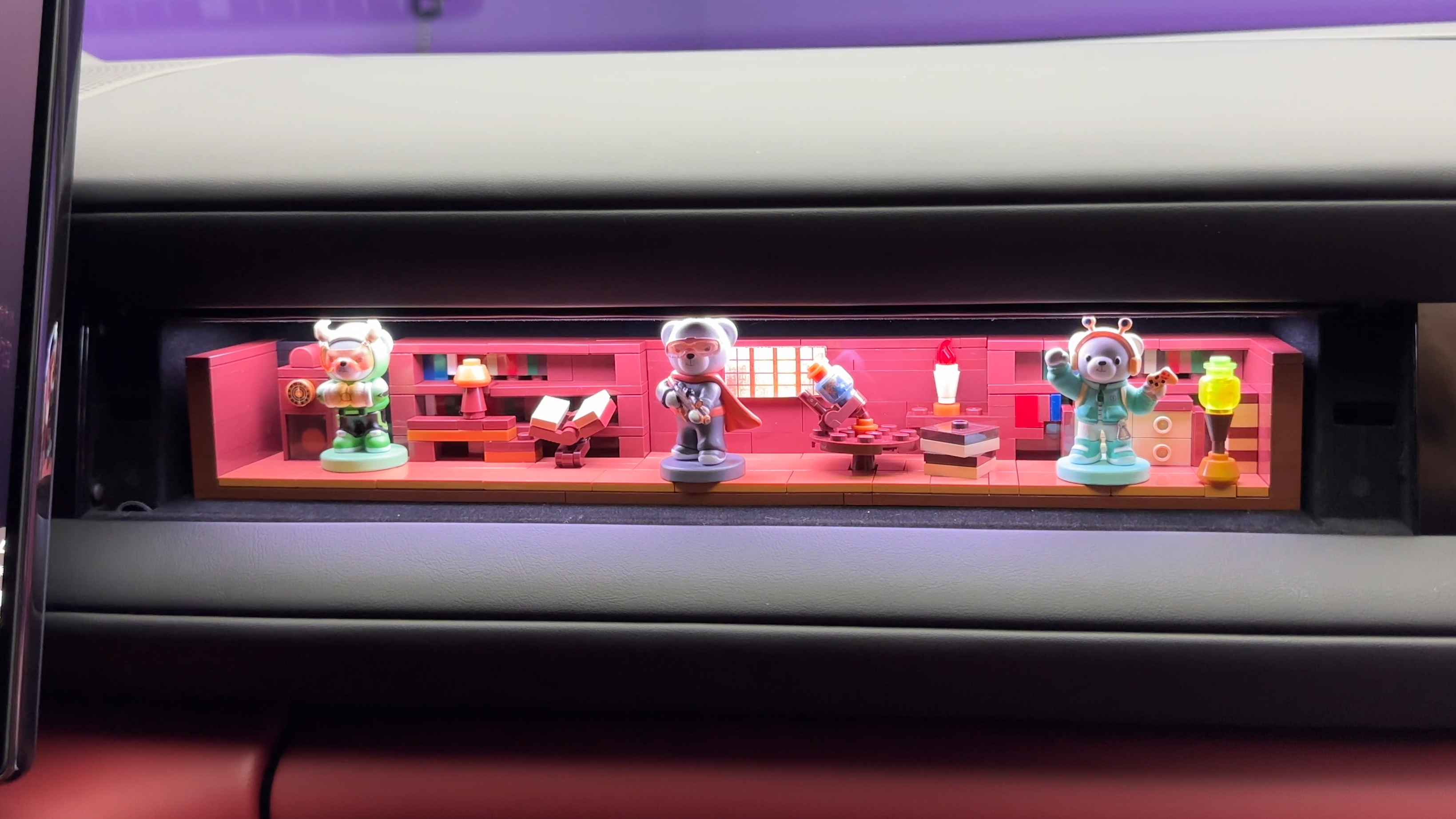 橱窗内设置了氛围灯,还带有磁吸,通过底部的供电接口,可以扩展各类的电子设备,目前演示的有:香薰、磁吸平板支架、Type C线充电模块等,日后还有更多的可拓展附件,这就让人更加期待了。