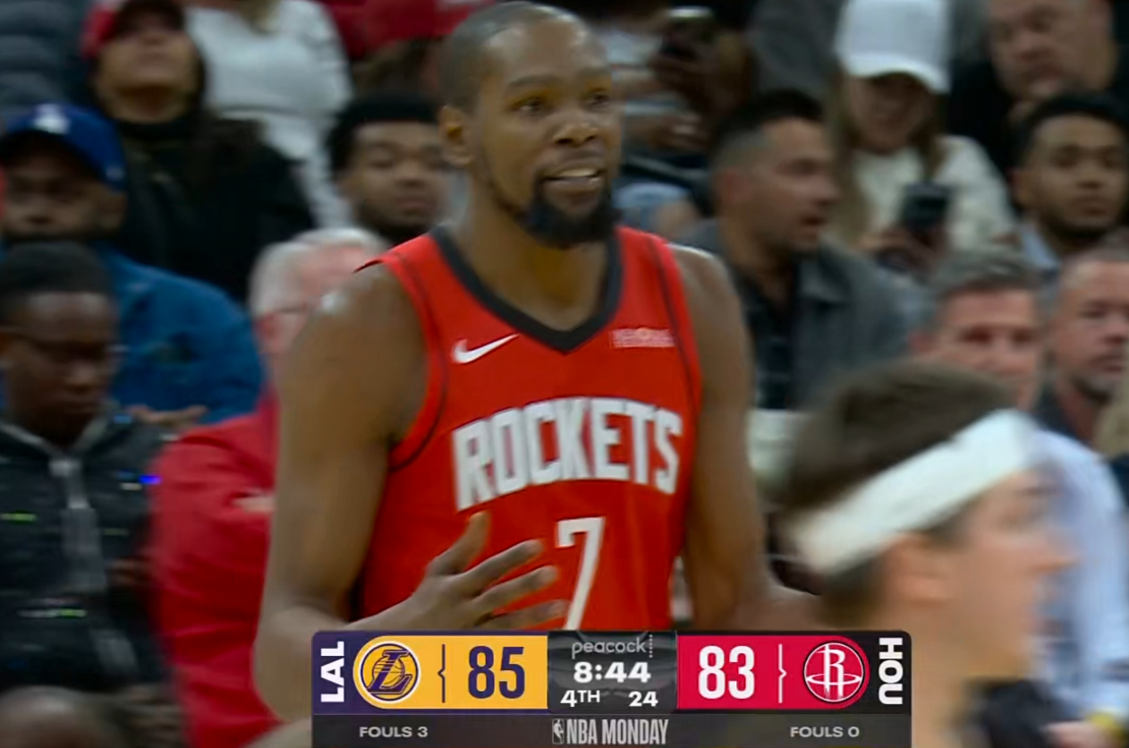 湖人高位包夹造成杜兰特回场违例!湖人vs火箭