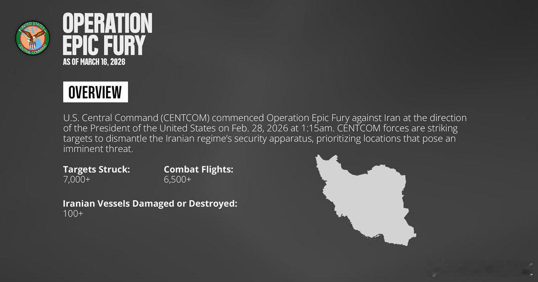 第十七天,美军依然在轰炸伊朗境内军事目标(迄今,共七千多处)