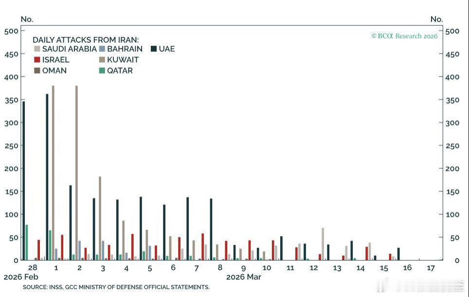 伊朗依然在发射导弹和无人机报复,还是针对阿联酋最多,总数不过百、规模继续下降;革命卫队加强对反对力量的镇Y,掀起新一轮大规模逮捕,目前政quan稳定,没有被推翻的危险