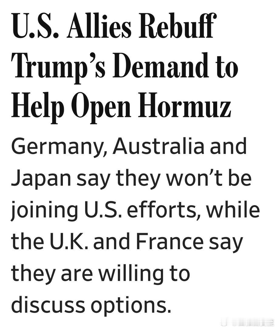美国政府重点是“开通霍尔木兹海峡”,目前只有英法愿意讨论“停火后派船护航”