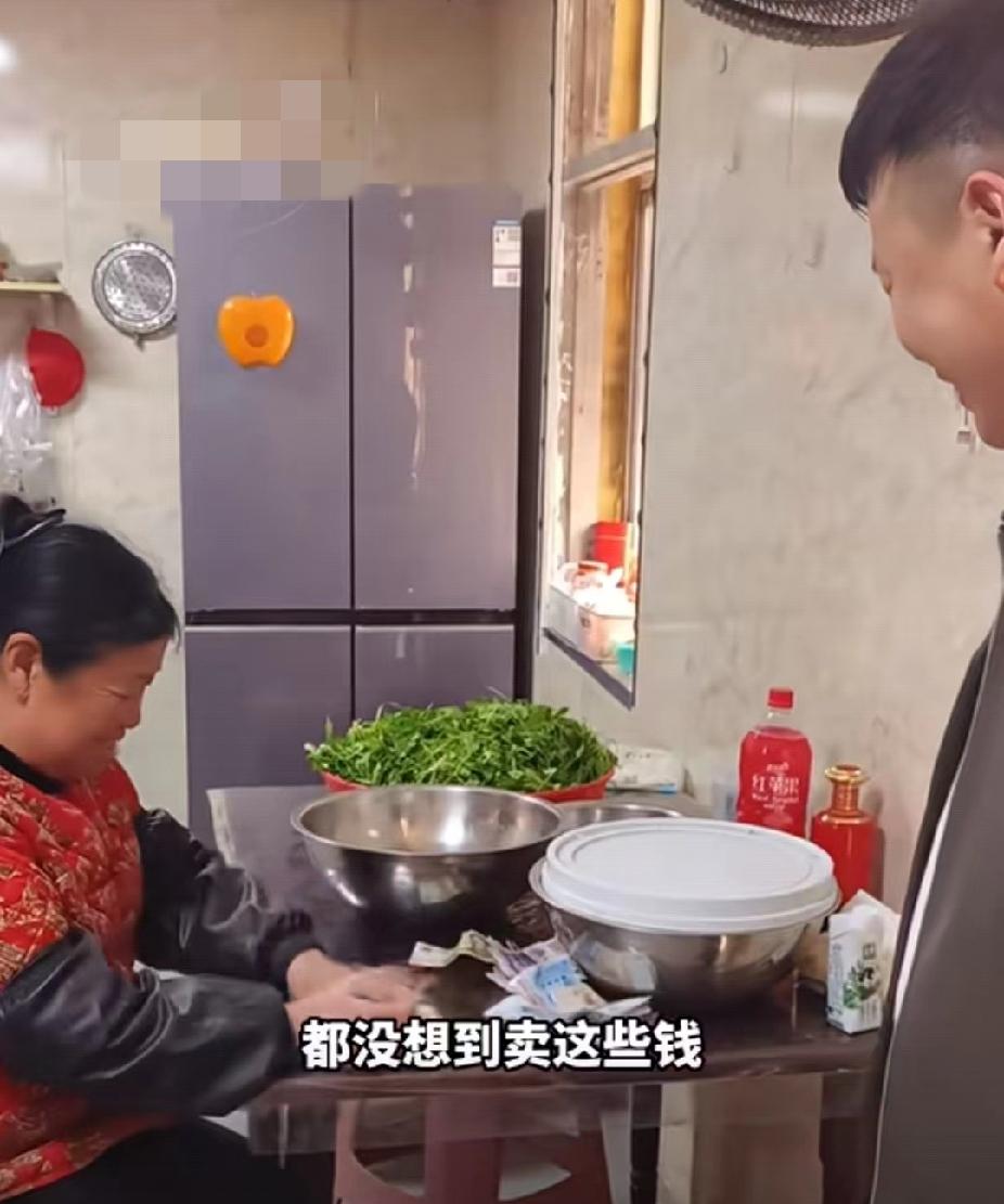 她这辈子最大的幸福,就是有了这个儿子吧!家里满地蒜苗“愁销路”,儿子“半卖半送”