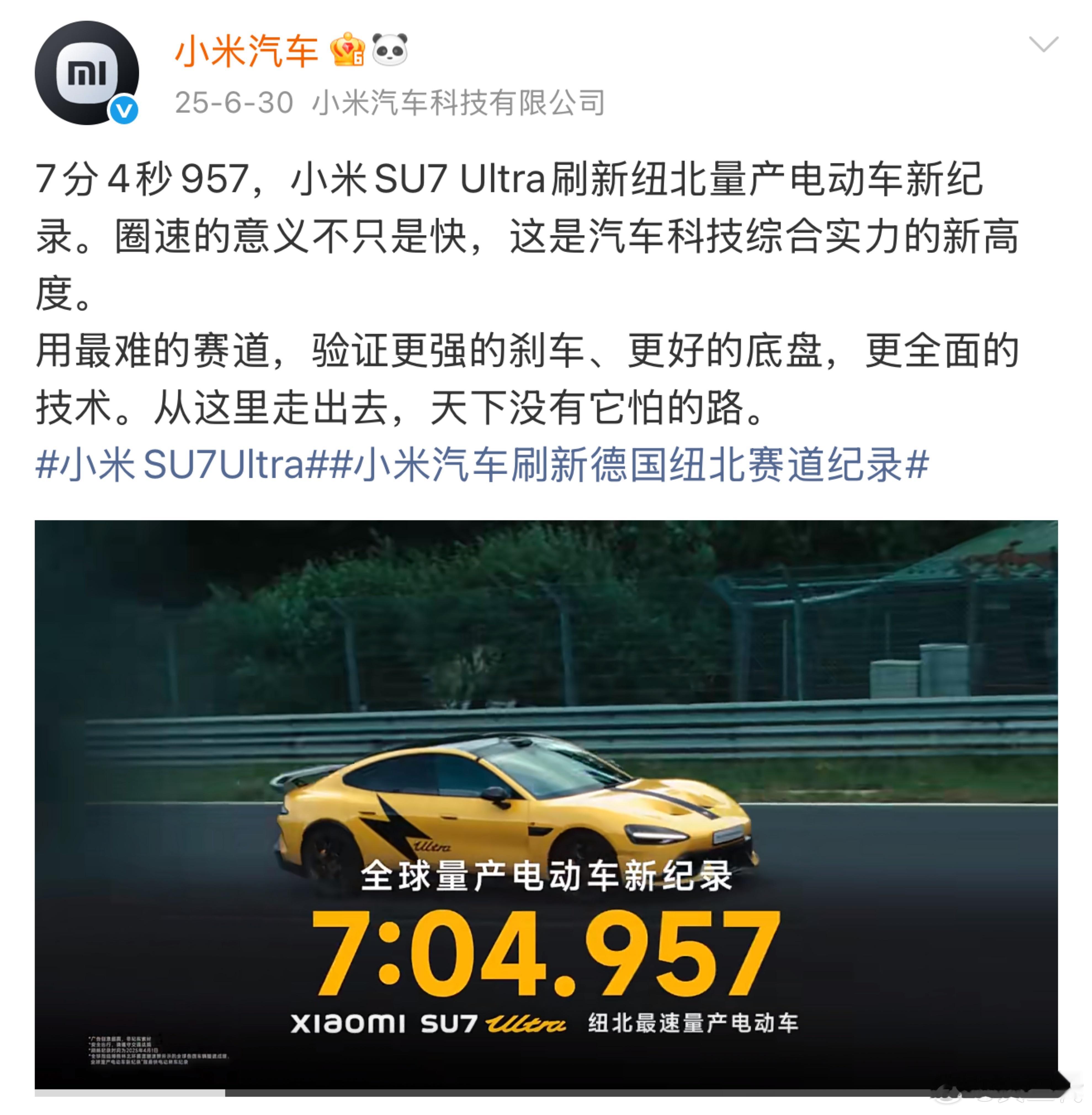 苏神用9秒83刷新亚洲短跑纪录,可以说是中国速度标杆,小米SU7 Ultra纽北最速量产电车。某种意义上两者在做同样的事情,一个在田径赛道上改写历史,一个在新能源赛道打破欧美品牌对性能榜单的垄断。都很有实力,还真找不到第二个这么适合小米汽车的代言人