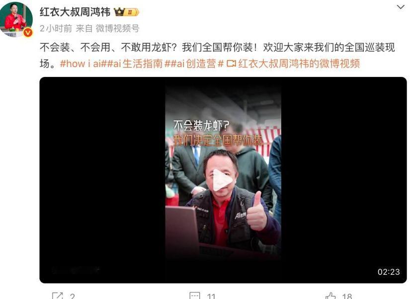 周鸿祎官宣“龙虾全国巡装”计划   3月17日,周鸿祎在自己的社交主页上官宣了“