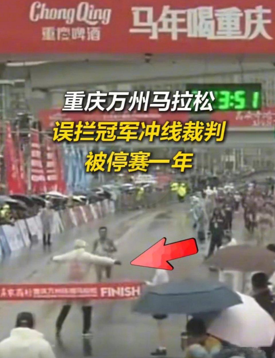马拉松冠军冲刺时被强行带离赛道 论业余我们才是最专业的。要知道,2026重庆万州环湖马拉松可是中国田协A类认证马拉松赛事,都能出现这种低级失误,难怪冠军事后公开吐槽。