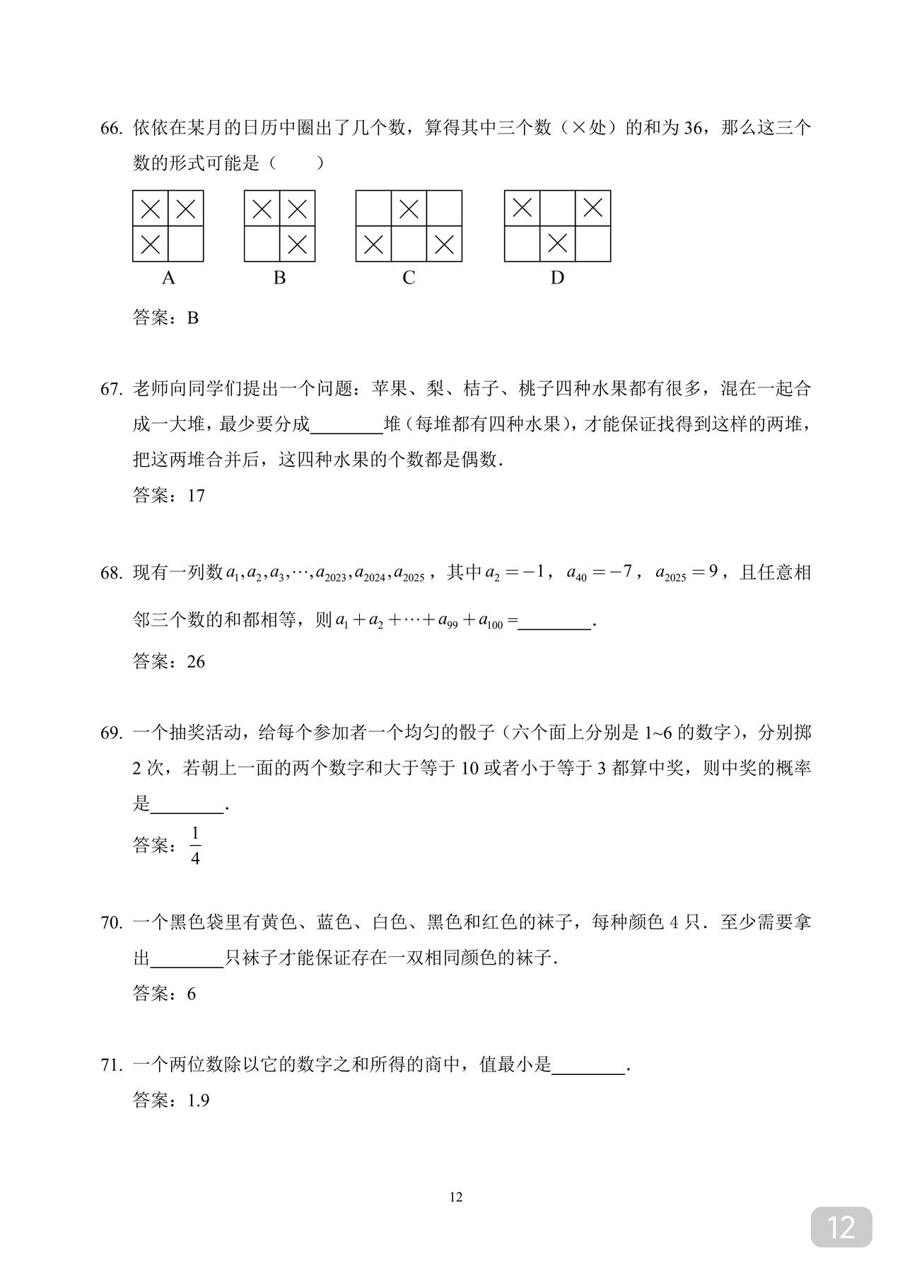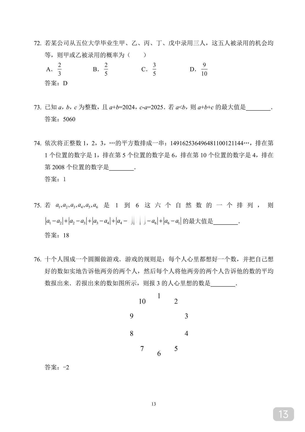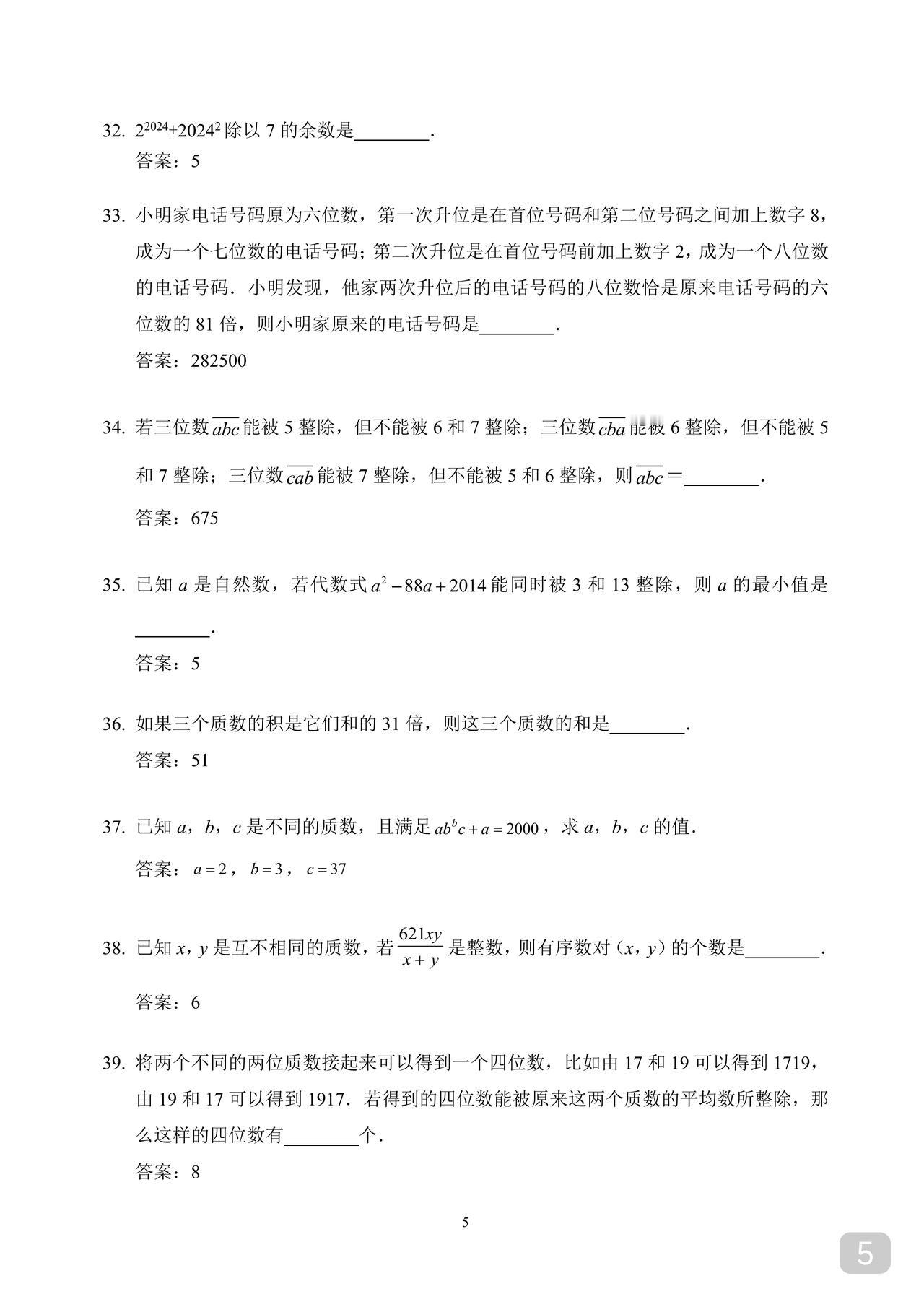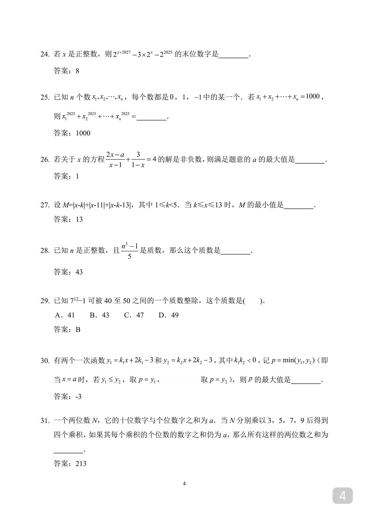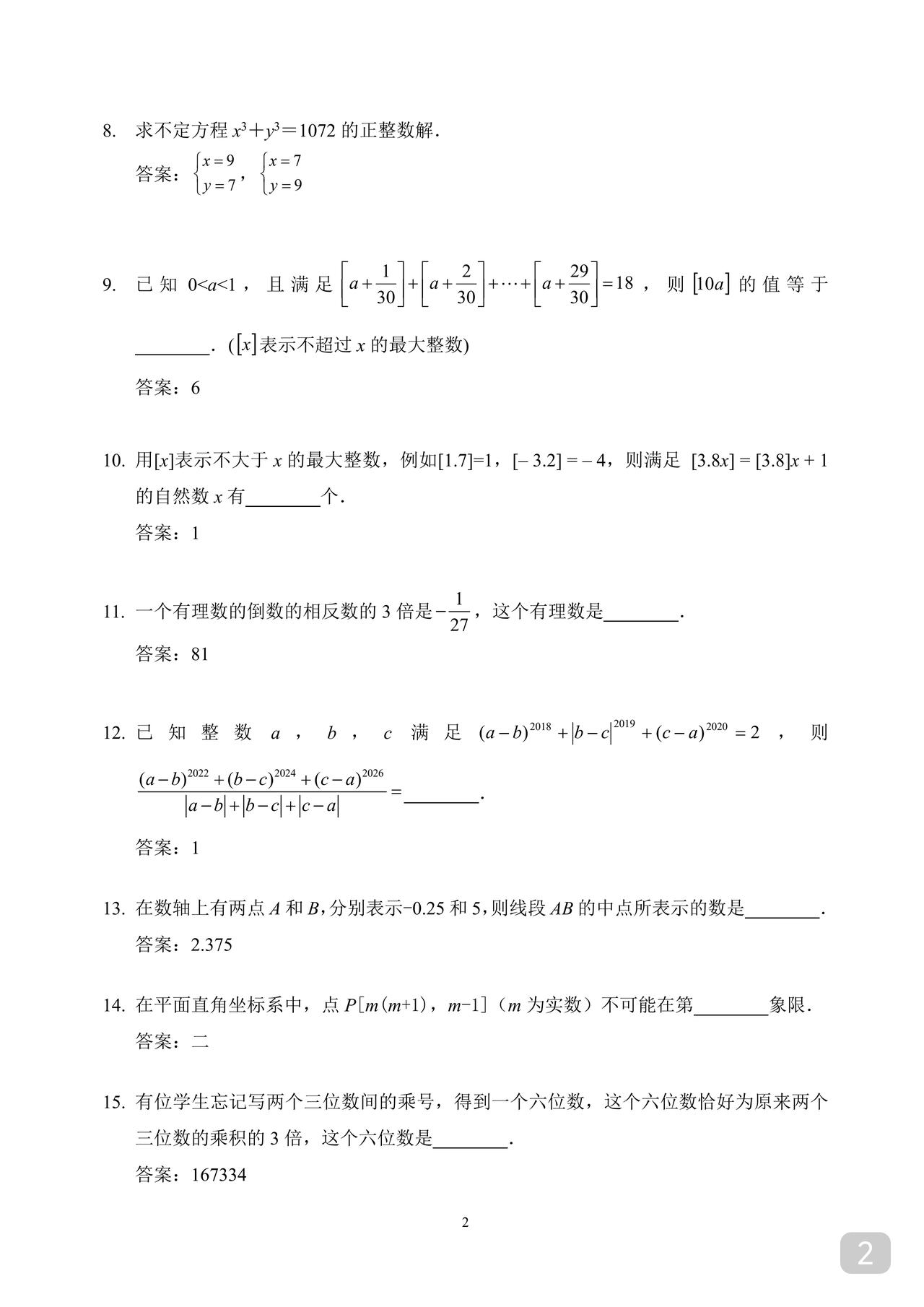 初一数学希望杯训练题 适合优生练手拓展 因篇幅限制 就直接发答案版了 不影响训练 奥数华杯希望杯小学小升初竞赛杯赛历年真题试卷答案解析电子试题