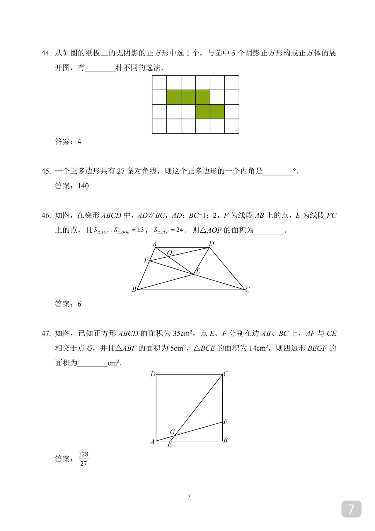 初一数学希望杯训练题 适合优生练手拓展 因篇幅限制 就直接发答案版了 不影响训练
