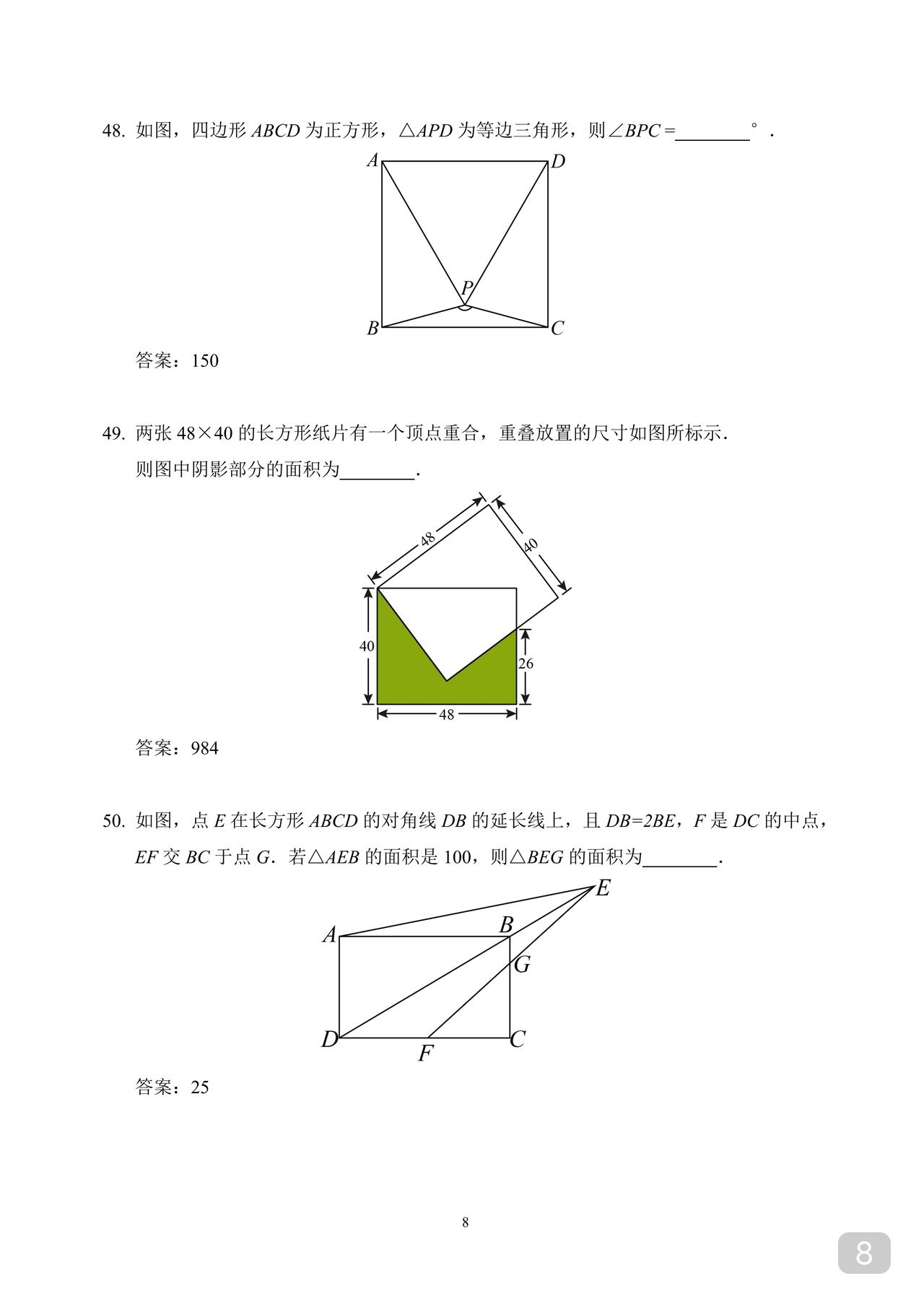 初二数学竞赛又是几何主导几何不建议学模型模型强调记背结论即使曾经推导过程