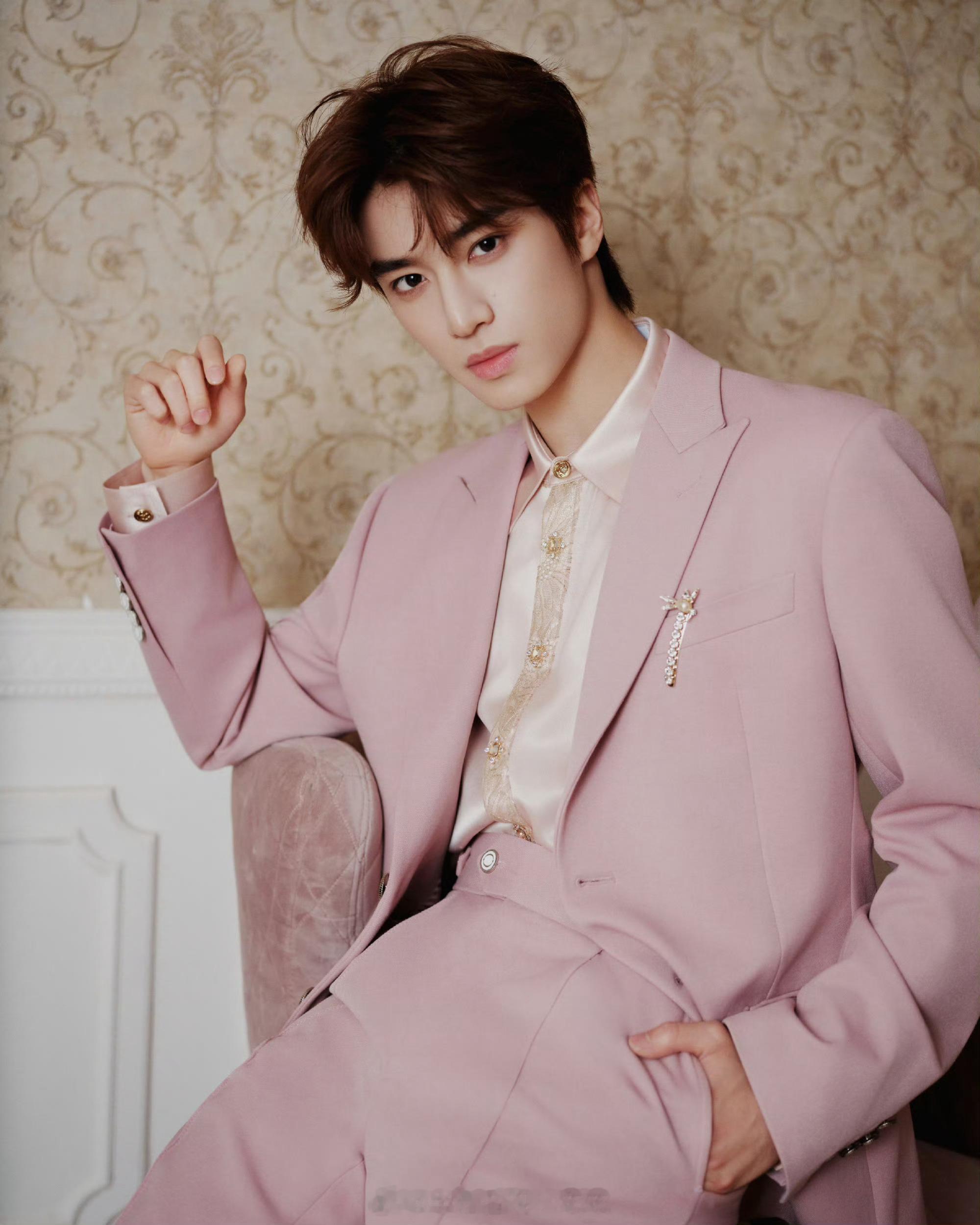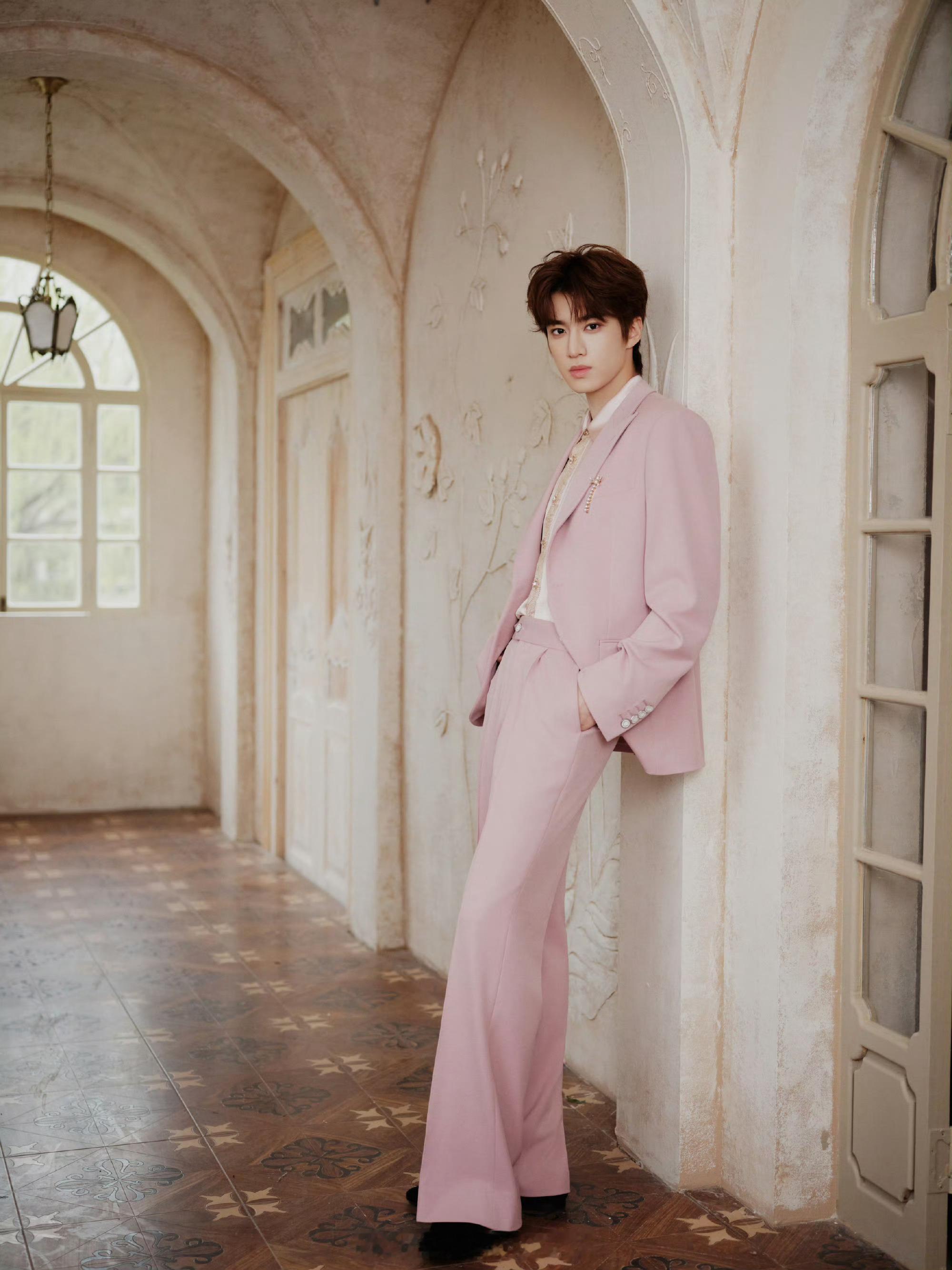 张康乐好帅张康乐粉色西装造型张康乐卷发粉色西装造型