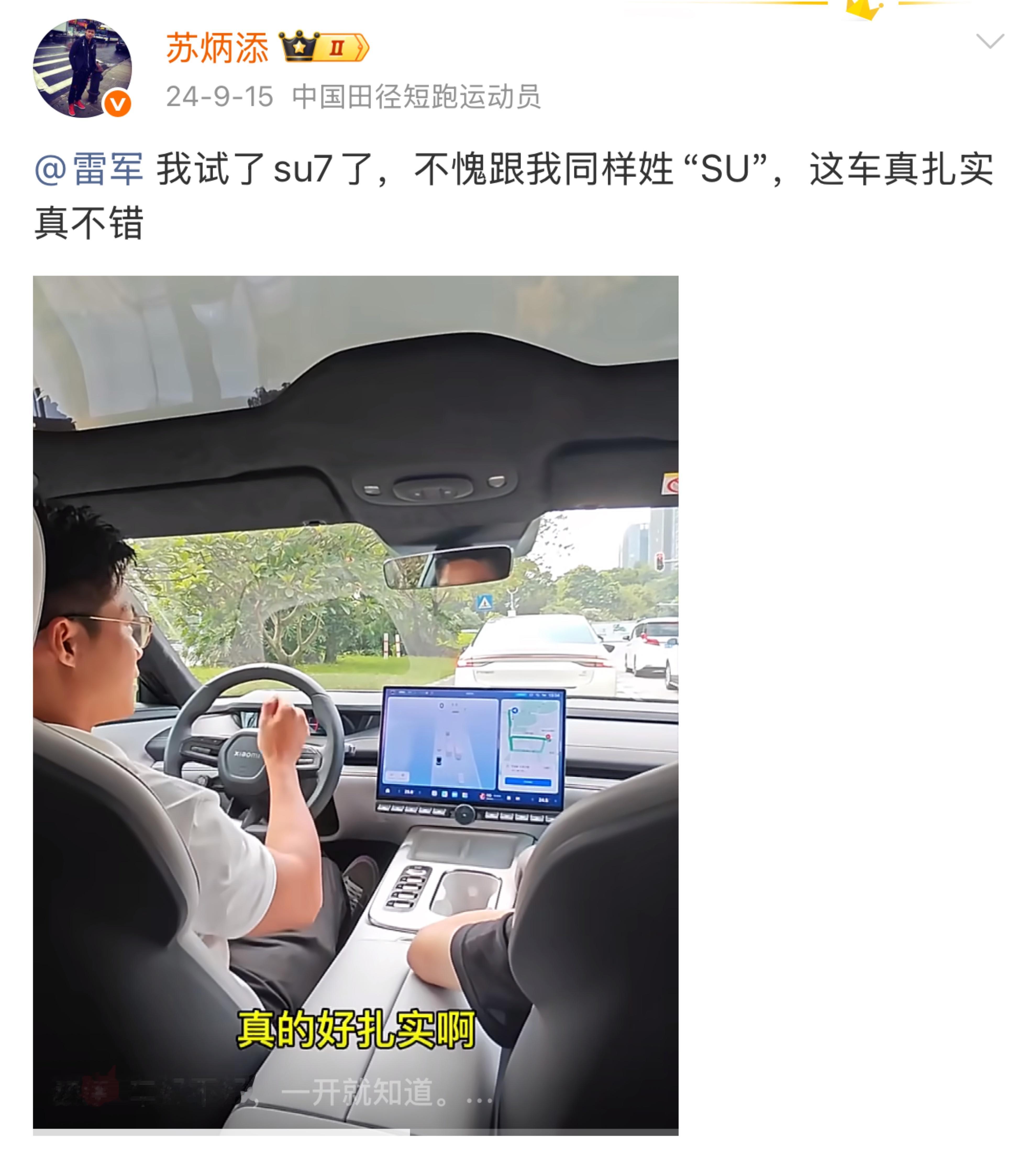 而且还有谐音梗,SU7配苏神,妥妥的“本家”代言~感觉赤霞红特别适合他,那一抹红就像当年跑出的9秒83一样燃。 对了~还有很多款配色,还有苏姓顶尖运动员,小米要不也找找一起代言~