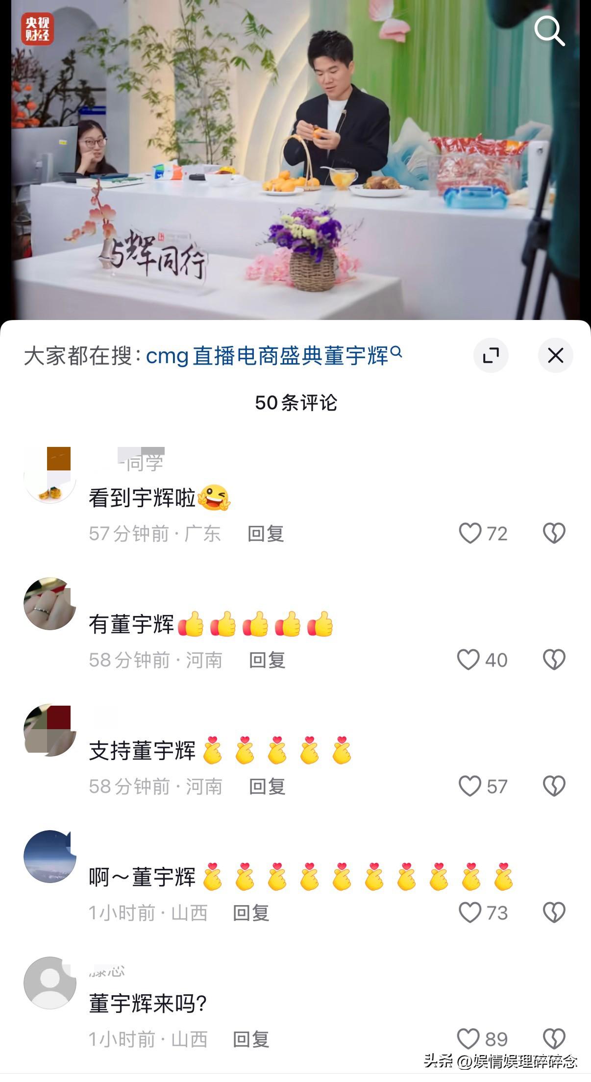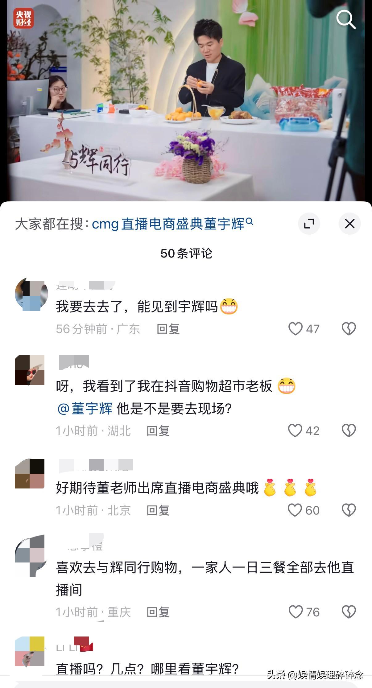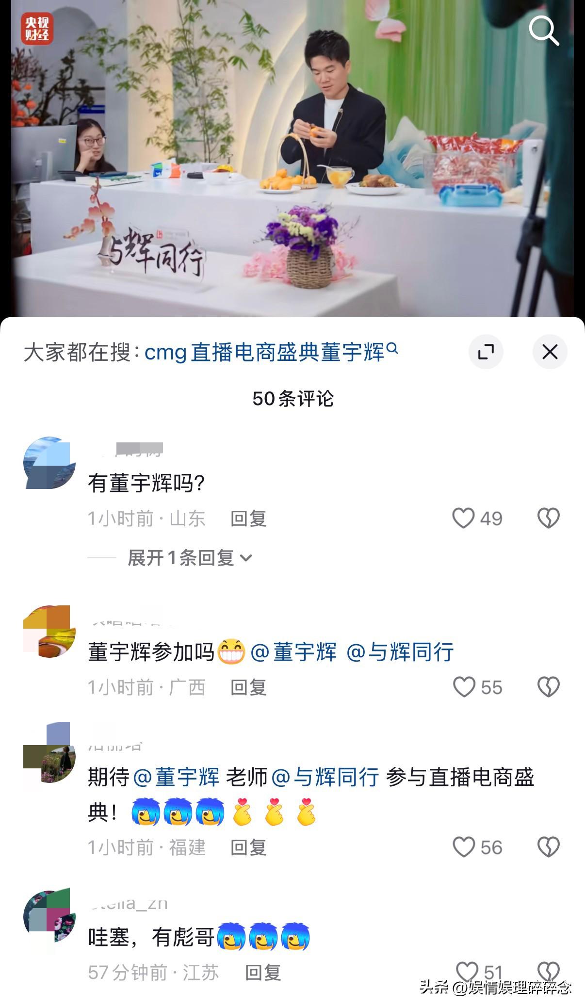 刚刚,央视财经发视频官宣, 3月18日将在珠海举办“直播电商盛典”, 还没有公布嘉宾,但配了宇辉的直播画面,这信号也太明显了。 这次的CMG直播电商盛典,央视官方主办、首届国家级直播电商行业顶级盛会,邀请都是行业先锋,头部主播。 央视财经用了宇辉在直播间的画面,足以说明“与辉同行”作为直播电商行业标杆被认可。 再看看评论区,“期待宇辉”直接被刷屏,大家都在关心宇辉去不去。宇辉一直站在光照到的地方,而黑他的人一直躲在角落。 静等官方消息,一起蹲一个官宣!