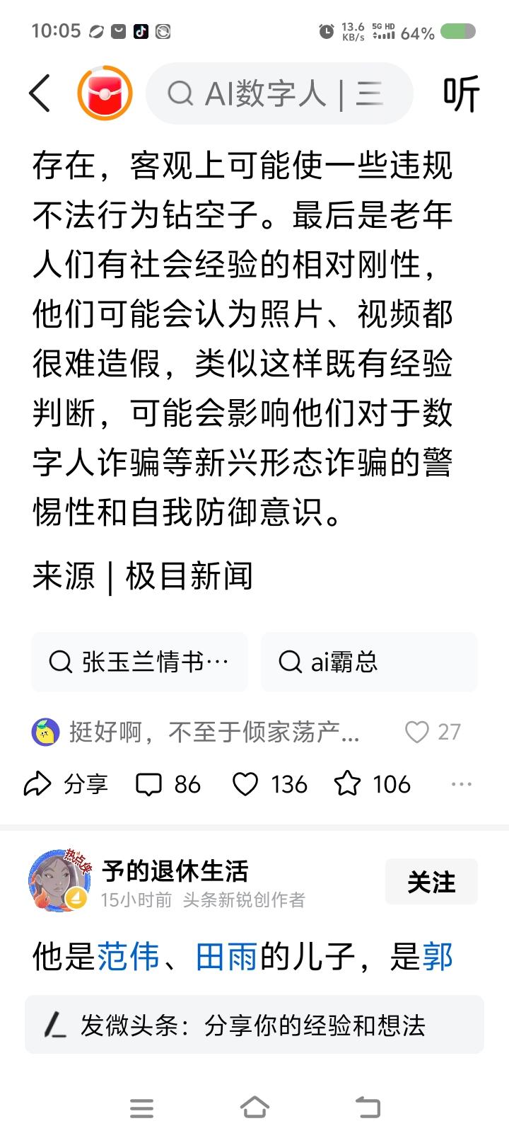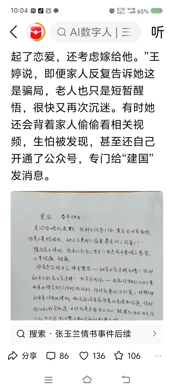 老奶奶给AI霸总写信?—— 据报道,有人利用AI视频向老年人设置消费陷阱。有一位老奶奶向“AI霸总”写信,又是道歉又是表达爱意,甚至要嫁给“他”。 点评: 有人违法犯罪,办他! 老年人需要关爱,关爱他们! 平台有责任,他硬不起来法办它! 温馨提示:要想让我踩坑花钱,门都没有!我把一切献给党!除了党和家人,我谁都不爱!