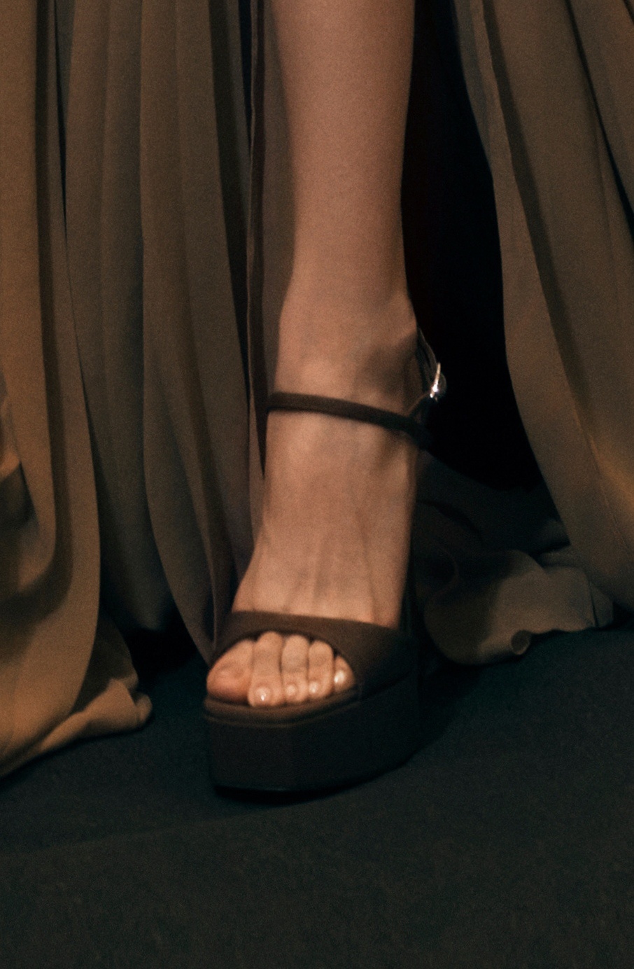 李一桐 天选种田文女主 一桐棕色编制挂脖露背高开叉礼服 大长腿黑色一字带高跟鞋