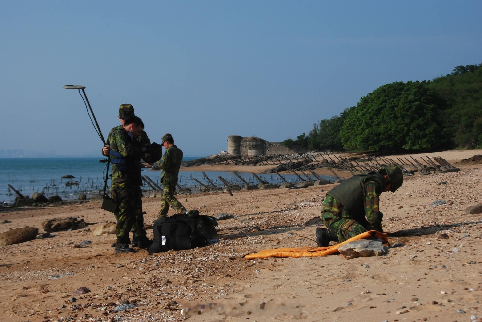 2007-2013年间在金门海滩进行排雷作业的台军金防部排雷大队工兵。2012年,金门地区基本完成排雷,随后进行“零星散雷全面勘查与排除作业”,共销毁各式雷弹多达9.5806万枚,排除总面积达300多万平方米。