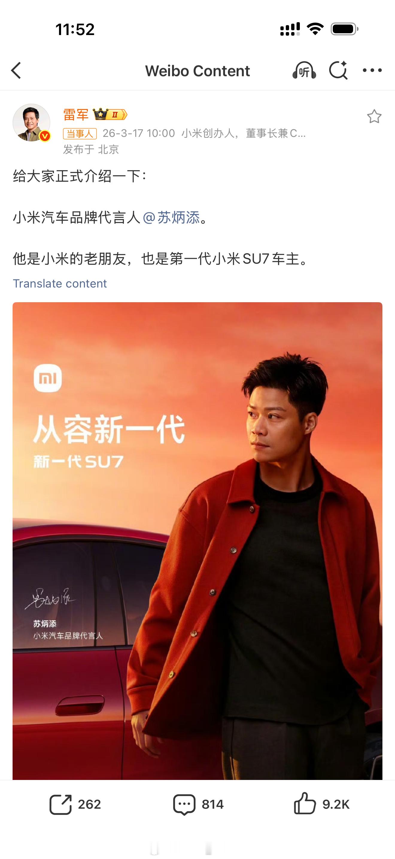 苏炳添说小米SU7已经开了很长时间至少我感觉,苏炳添这种级别的运动员,时间成本极高,不可能随便“捧场”你看长期使用-意味着SU7不只是“发布会惊艳”,而是能扛住日常通勤和高频使用运动员应该对于驾驶体验会更在意,说明这方面体验很好,不然不会一直开这下成了代言人,说明这车不仅快而且稳,就等两天后的发布了