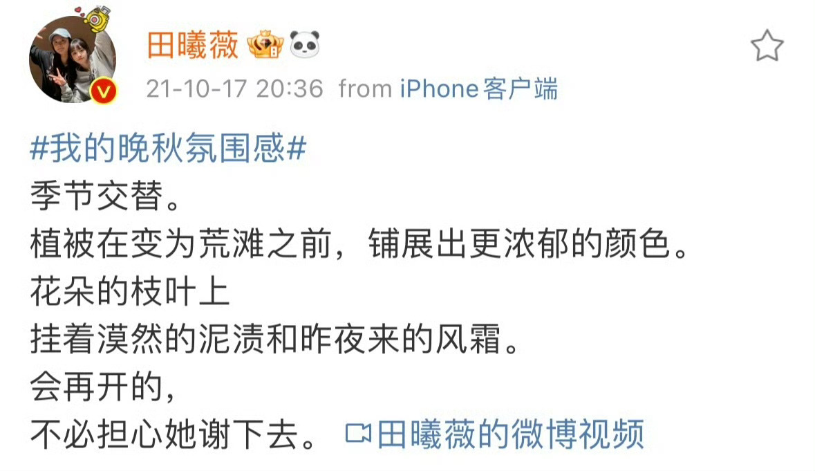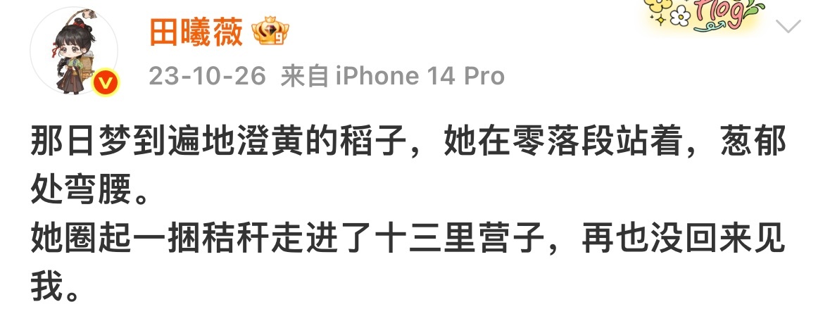 考古的风终于轮到田曦薇了翻看之前的微博田曦薇真的是一个很有想法 很会写的小女孩