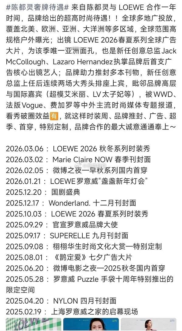怎么还有人嘿陈都灵的奢牌待遇啊全球各地地广➕品牌推封杂志➕看秀头排➕品牌认领➕海外媒体专题报道这任何一个拎出来好像都不是下家0奢代能插上话的啊陈都灵
