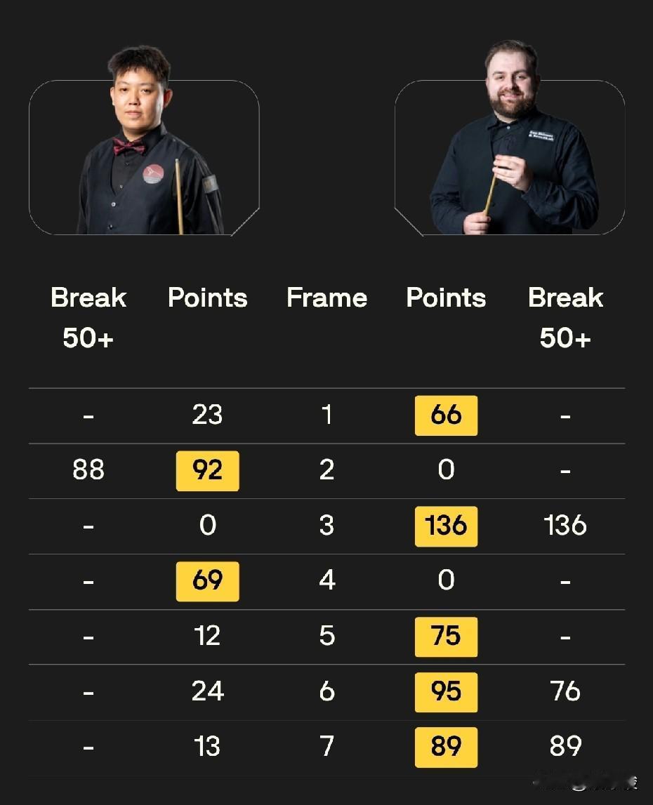 世界公开赛上午时段比赛最新战报,肖国栋5-2胜勒克莱尔,刘文炜2-5负佩奇,吕昊天2-5负凯伦·威尔逊,吴宜泽5-3逆转常冰玉。今天14点,张安达对霍尔沃斯,傅家俊对博伊科。 肖国栋与勒克莱尔的比赛,双方一共打出4杆破百,肖国栋连续打出3杆,勒克莱尔打出1杆,肖国栋还打出2杆60+。肖国栋下一轮的对手是张安达与霍尔沃斯之间的胜者。 刘文炜与佩奇前4局2-2,之后刘文炜连丢3局,2-5告负。 吕昊天在与凯伦·威尔逊的比赛中一度1-4落后,之后扳回一局,但最终实力不济,2-5败下阵来。 吴宜泽与常冰玉的中国德比,常冰玉开局状态很好,3-1领先,之后被吴宜泽连赢4局,3-5被逆转。 上午时段另一场比赛,艾伦与科瓦尔斯基的比赛节奏缓慢,目前艾伦3-2领先。 下午时段的比赛从14点开始,具体对阵如下: 张安达vs霍尔沃斯 傅家俊vs博伊科 希金斯vs斯坦·穆迪 特鲁姆普vs努斯勒 卡特vs奥唐纳。 中国球员,加油!