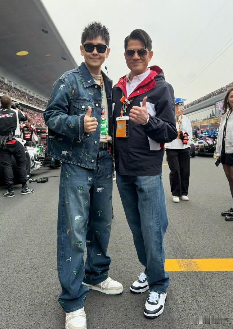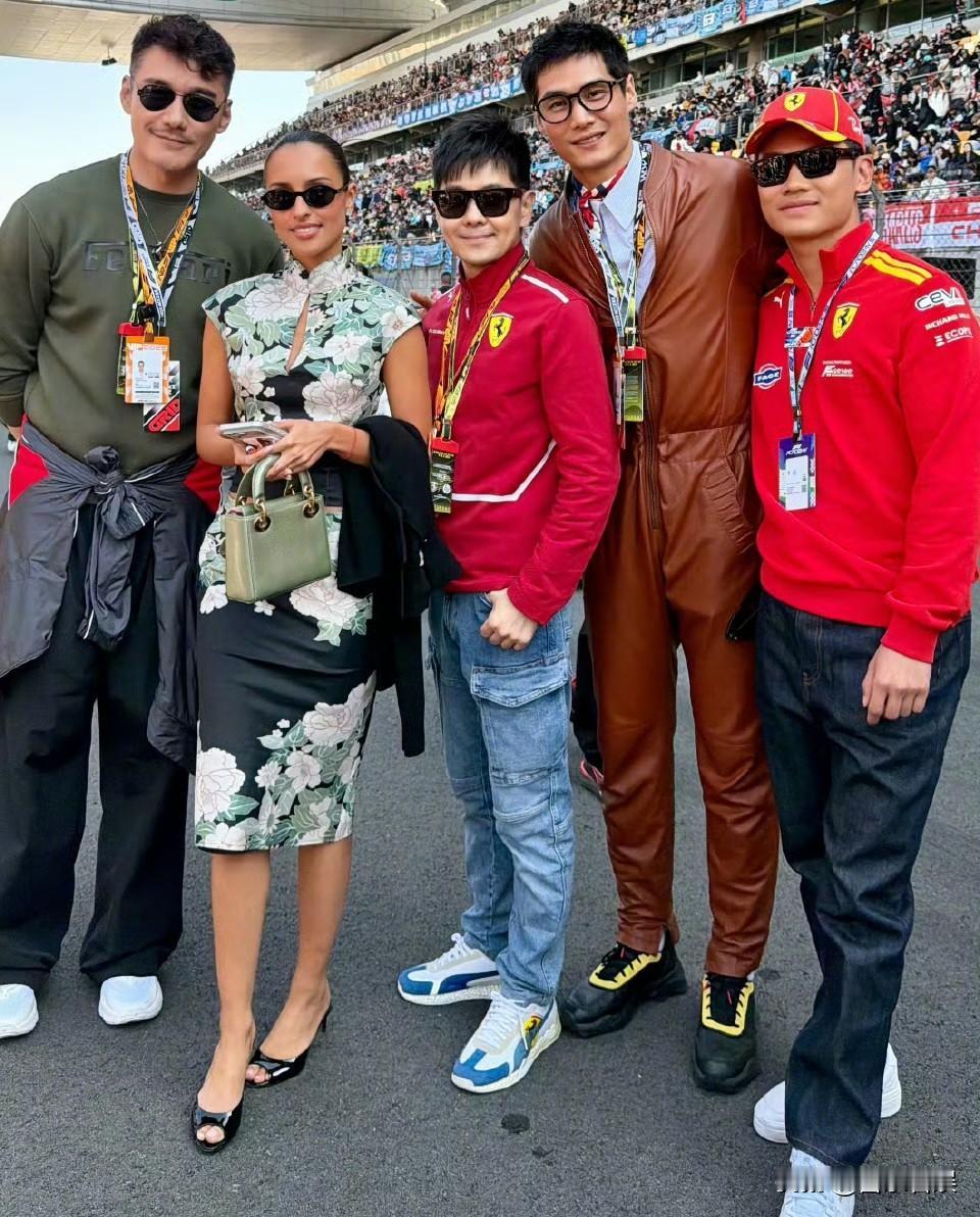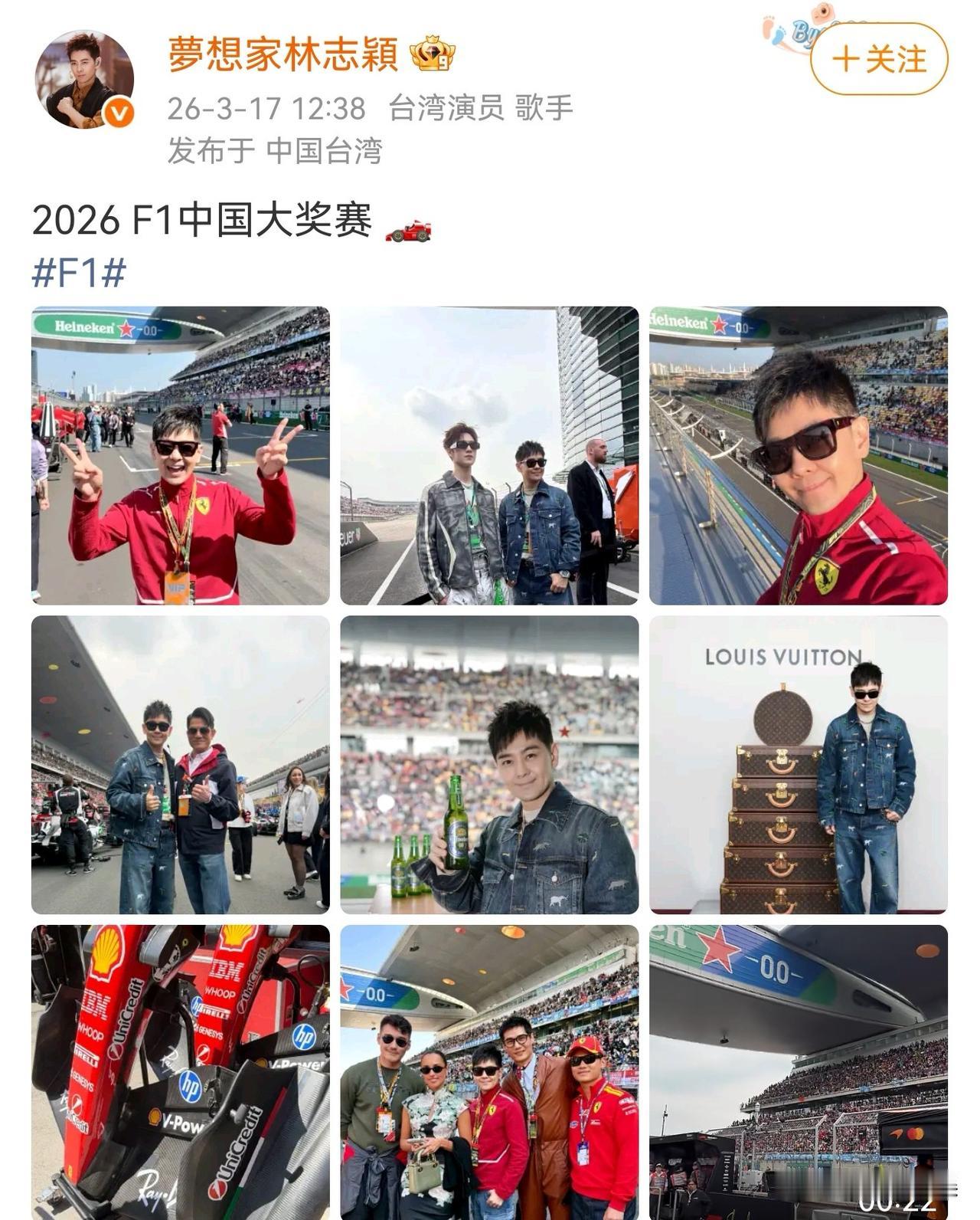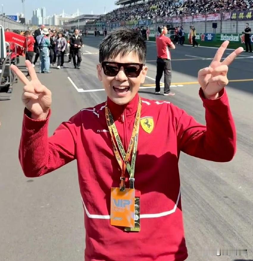 林志颖,开心晒图 3月17日中午,51岁的林志颖,突然在社交平台连发九宫格,字里行间满是对赛车的狂热,谁能想到,经历过车祸的他,依旧是那个为F1疯狂的少年。 他在社交平台配文“2026 F1中国大奖赛🏎️”,还晒出了满是热血的现场照。 这位因《放羊的星星》“仲天骐”、职业赛车手身份被观众熟知的“不老男神”,私下里依旧是个地道的“速度爱好者”。 从照片里能看到,他一会儿换上红色法拉利队服,戴着黑框墨镜,在赛道上比着剪刀手咧嘴大笑,满是少年。 一会他又换上满是动物刺绣的牛仔套装,和郭富城并肩站在赛道边,两人都对着镜头竖起大拇指,笑容里藏着对赛车的共同热爱。 他还和李昀锐同框合影,李昀锐穿着做旧皮夹克配泼墨阔腿裤,酷劲十足,而林志颖则是一身休闲牛仔,两人站在赛道旁,一个冷冽一个亲和,反差感拉满。 此外,他还和胡兵、张朋等好友一起合影,有人穿复古皮裤,有人着改良旗袍,大家都挂着F1 VIP证件,一起开心大合影。 说起来,这不是林志颖第一次为赛车热血。从职业赛车手到荧幕偶像,他这辈子都和速度绑在一起,哪怕经历过车祸,也没放下对引擎声的执念。 对林志颖来说,看F1从来不是“消遣”,而是刻在骨子里的热爱。 从林志颖晒出来的照片,到现场近距离观看F1比赛的他,是真的很开心。